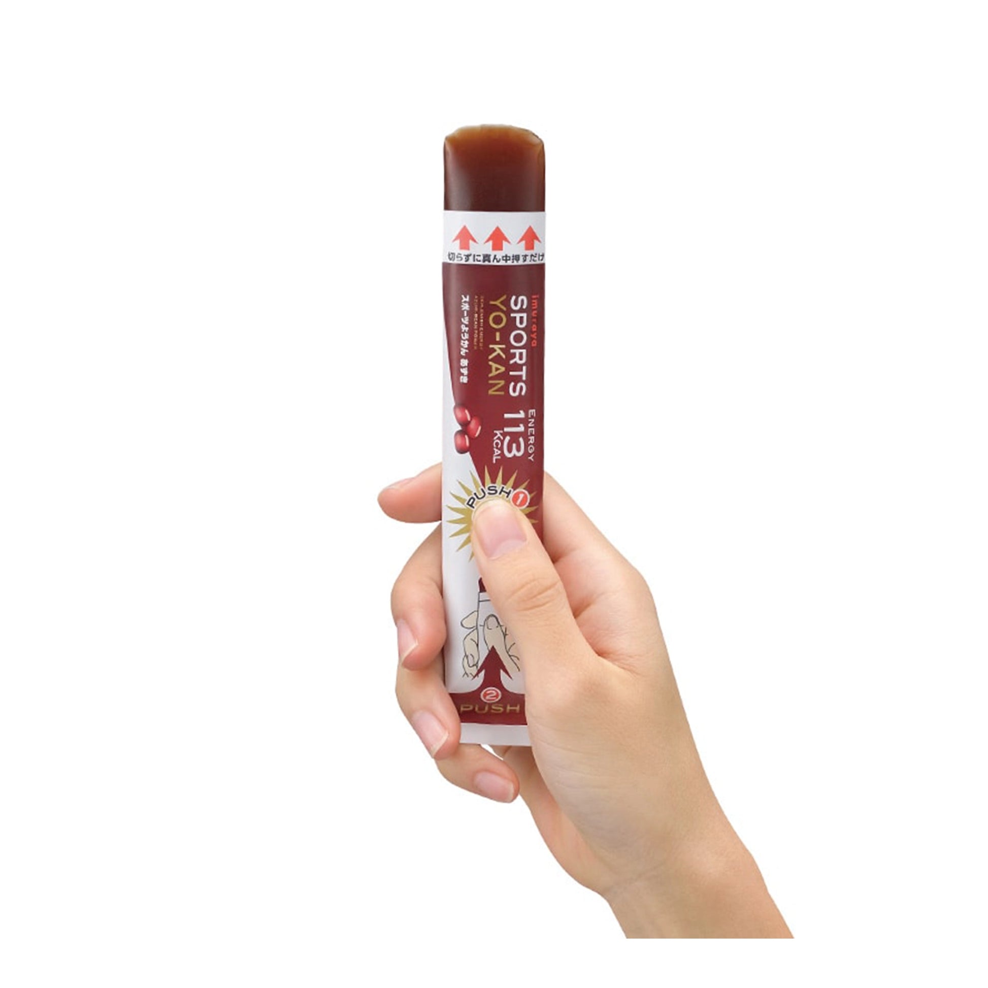 ・ハサミで封を切らずに、商品中央部をギュッと押すだけで中身のようかんが出てくるので、速やかなエネルギー補給が必要なマラソンやトライアスロンなどのタイムレースで活躍します。