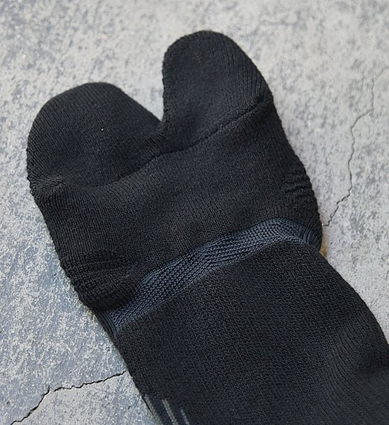 先割れ(足袋)仕様と、足底のグリップ編みがアップダウン時に地面をしっかり捉えます。