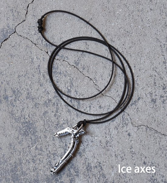 ボルダー、靴、氷軸をモチーフとしたチャームのペンダントです。