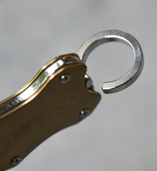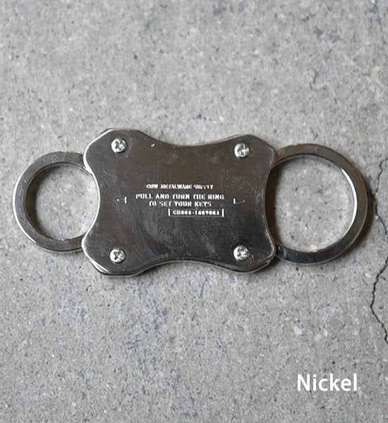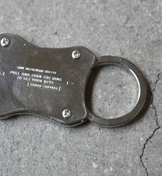 50-60年代に自動車メーカーなどで販促物として使用されていたスプリング式のキーリングをベースにオリジナルデザインで制作。ダブルエンドになっていますので両側から鍵の着脱が可能になります。