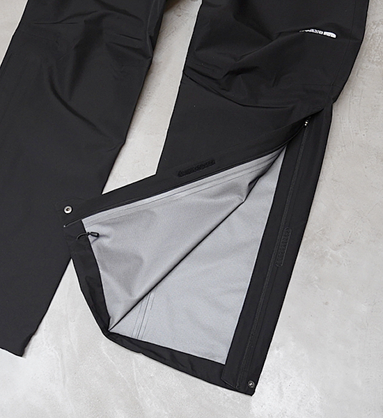 ナノレベルのポリウレタン繊維をミクロ単位で吹き重ねてシート状にした、THE NORTH FACEが独自に開発したナノフィルム状の防水透湿素材、FUTURELIGHTを採用したレインパンツ。防水性に加えて高い通気性が特徴です。75デニールの表地はハリがありながらもしなやかな着心地で、脚の動きもスムーズです。裾に配置したジッパーにより、靴を履いたままでも着脱が可能。登山などのアウトドアアクティビティで、行動中も快適に着続けられる1着です。