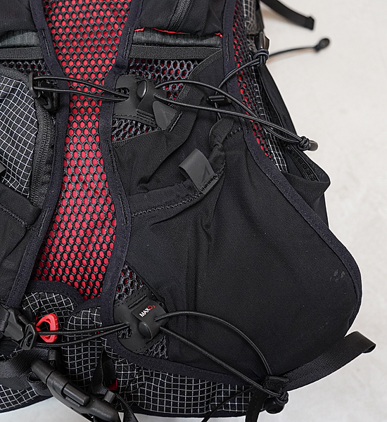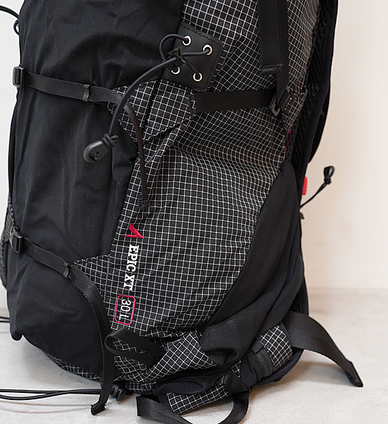 ULTRASPIRE ウルトラスパイア エピック XT 2.0 ブラックはエピック XTモデルの容量を5L大きくした30Lモデルです。長期~数日間のセルフサポートの活動を想定しており耐久性の高い生地で作られています。背中にあたる部分は2タイプのファイバーシステムが採用されており汗などの湿気を分散させるのに役立ちます。取り外し可能なフレームが付属し、パックの中に入れておくことでて安定性が増し、また取り外して積載量を増やすことができます。