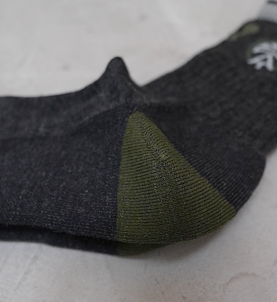 防縮加工を施したニュージーランドメリノウールを使用し、蒸れ難く防臭抗菌効果、体温調節機能に優れています。足裏にDTV独自の編み方により高密度クッショニングをアンクル上部にはリビングを施しずれにくく適切なフィット感を実現。アーチ部分は伸縮性のあるアーチサポートがあり、摩擦の多いヒールとつま先部分は耐性補強され、つま先部分はインビジブルシームで快適な履き心地のリングトゥー構造になっています。ウォーキング、ハイキング、トレッキングに最適です。