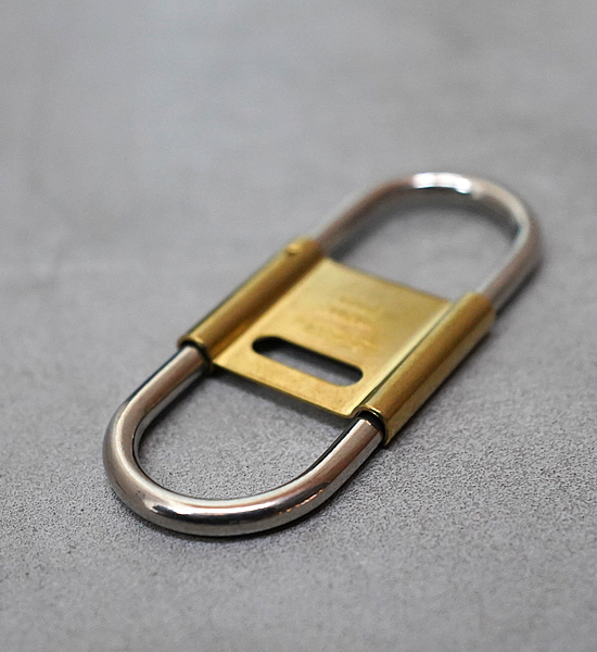 カラビナタイプのキーリングをCANDYなりにデザインするとこういう感じになりました。スプリング式で脱着しやすく、開閉式のセンターパーツがストッパーになっているのでベルトループに付けた際にキーリングと鍵の回転を防ぎます。