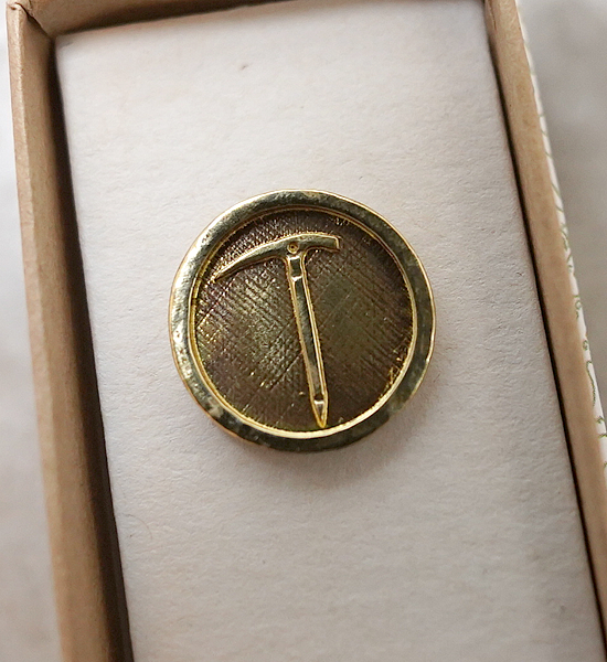 ピッケルモチーフにしたバッジ。