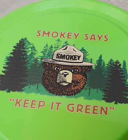 アメリカで70年以上も愛されている山火事防止キャンペーンのマスコット「スモーキーベア」のフライングディスクです。