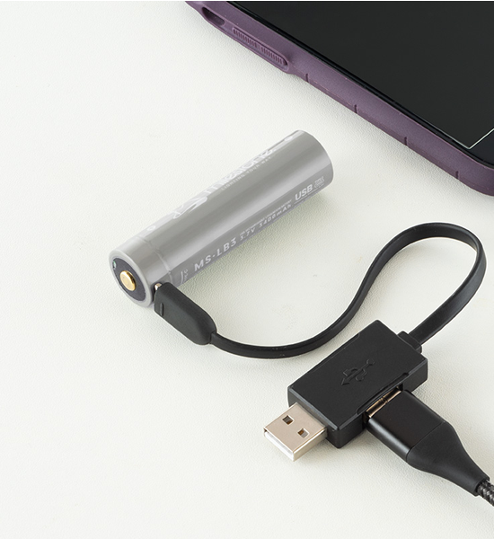 超軽量&ハイパワー。モバイルバッテリーとして使える専用充電池付属