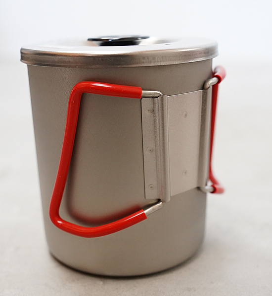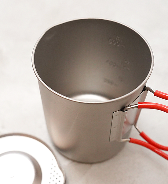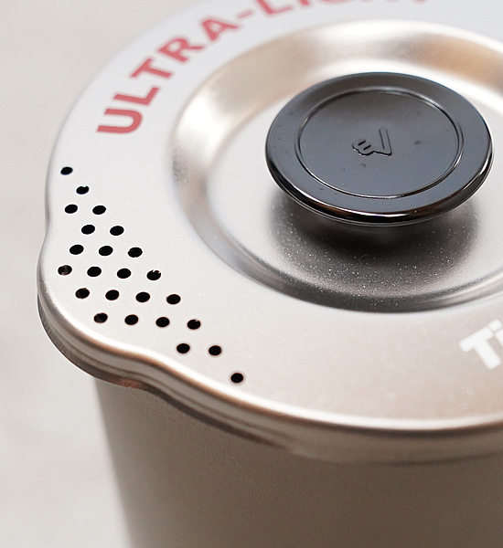 パスタの湯切りが出来るユニークなポット。食事を選ばない絶妙なサイズ感が北米のスルーハイカーから根強い支持を得ています。110サイズのガスカートリッジが収納可能。