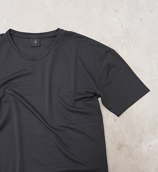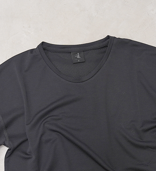 蒸し暑い夏のシノギングに欠かせないのがこのウロコシャツ。薄手でさらさらテロテロで、優れた吸汗性とクールダウン効果を備えているので、とにかく涼しい着心地を実感できます。そのため、まだ少し肌寒い季節に着ることはお勧めしません。それくらい涼しいのです。首まわりに少しゆとりを持たせることでシャツなどを重ねても窮屈さがなく、広めの肩巾と鱗のような編み目にはどことなく和の雰囲気が漂います。