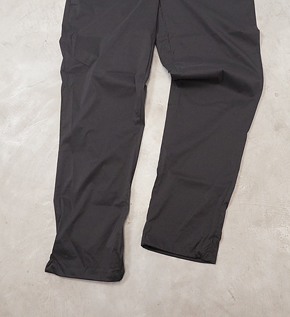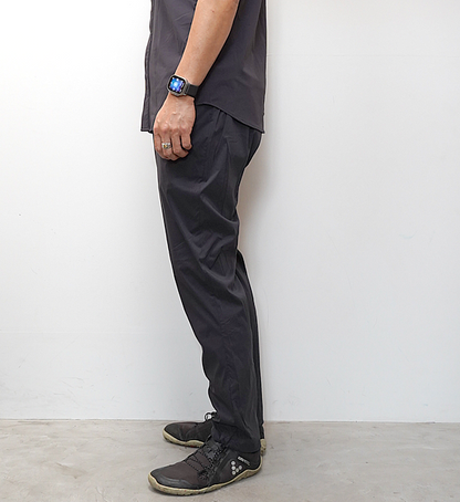 表面はDWR(耐久撥水)加工を施した防風機能のあるソフトシェル、肌面は起毛したダブルフェイスのストレッチ素材を使ったユーティリティ性の高いパンツです。ソリッドなデザインと細身のシルエットながら、立体裁断と生地のストレッチ性により動きやすく、強風や低温下でも適度な保温性を発揮します。冬季のトレッキングはもちろん、すっきりとしたデザインは使用用途を限定しないユーティリティパンツです。