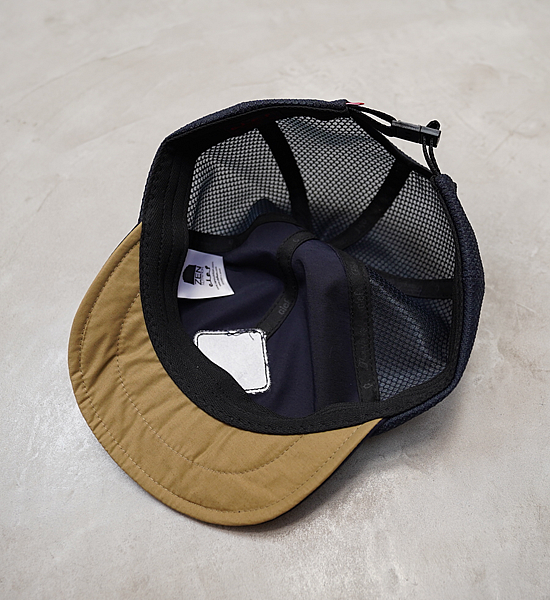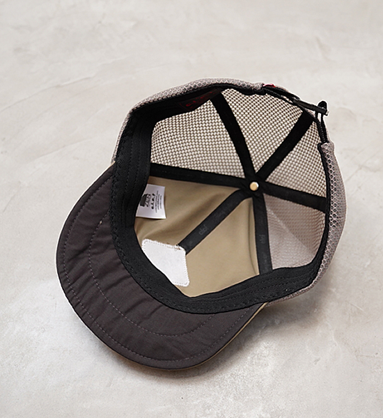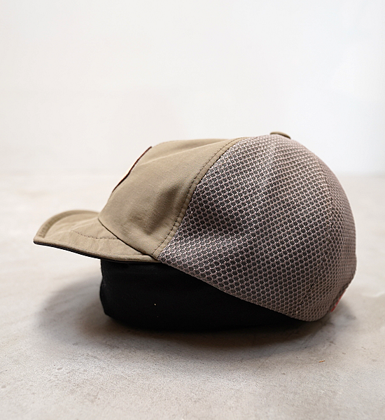 Clefで人気の60/40 MESH B.CAPをベースにCLEAN OUTDOORS仕様にカスタマイズ! ヘルメットインナーとしても使えるよう、頭頂部の天ボタンを外しました。 天ボタンは、生地の張り合わせ部分がほつれない為にあるので、ボタンの代わりに刺繍で補強しました。