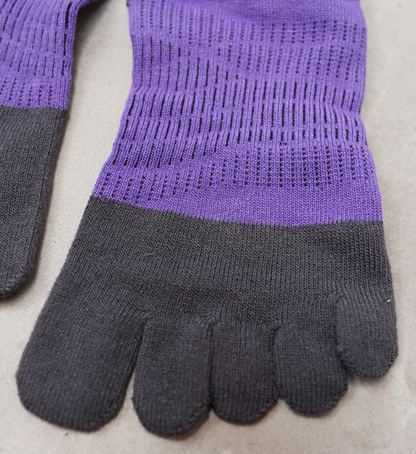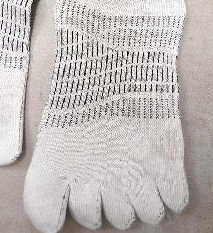 インジンジの5本指ソックスはランニングに最適な靴下です。 独立したトゥースリーブ形状により5本の指は解放され、走行時のグリップ力を高めバランス力を向上させます。さらに、指と指とが擦れにくいのでランニング時の安心感にも繋がり、汗を効率よく吸収蒸散させることで肌面をドライな状況に保ちます。素材には耐摩耗性に優れる生地を採用。5本指ソックスの弱点である穴あきに対する耐久性を格段にアップさせました。