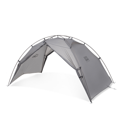 ZEROGRAMのシグニチャテントでもあるEl Chalten(エルチャルテン)は、フライとインナー、フットプリントを連結して一度に設営できる一体型構造を、初めて実現した軽量ダブルウオールテント。テントの設営撤収が非常に簡単で、稜線使いや悪天候下でも安心してご利用いただけます。長辺の前後2か所にある大きな入口と前室は、実際のフロアサイズ以上に解放感と機動力のある居住空間を実現します。インナーテント壁面全面とベンチレーションの素材には、通気性を保ちながら結露がほとんど発生しないモノフィラメントが使用されています。