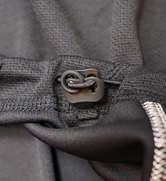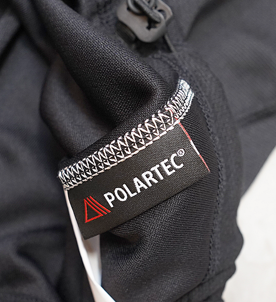 POLARTEC 社の POWER DRY は、両面に異なる編み糸 を用いた二重ニット構造を持ち、肌面は水分を皮膚からすばやく除去し、外側は すばやく乾きます。汗をかいても皮膚をドライな状態に保ちます。縫製の糸にデ オドラントステッチを使用していて、汗の臭いを抑えます。自由に動くことが容 易なパターン設計をしています。