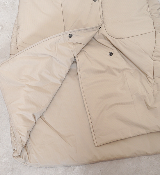 表地は20デニールの高強力ナイロン糸を高密度で織ったPERTEX QUANTUM AIRの生地で、中綿は速乾性や撥水性、保温性に加え、高い圧縮復元力を併せ持った高機能中綿PRIMALOFT Silver Insulationを使用しています。