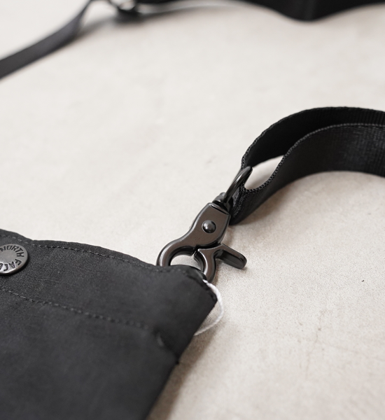 ポリエステルウールリップストップを使用したマルチショルダーバッグ。たて糸にリサイクルポリエステル、よこ糸にはリサイクルポリエステル糸とポリエステルウールの混紡糸を使用し、環境に配慮した、フッ素系化合物を使用しないPFCフリーのはっ水加工で機能性をプラス。インナーバッグなど、用途に合わせて持つことができるマルチバッグです。