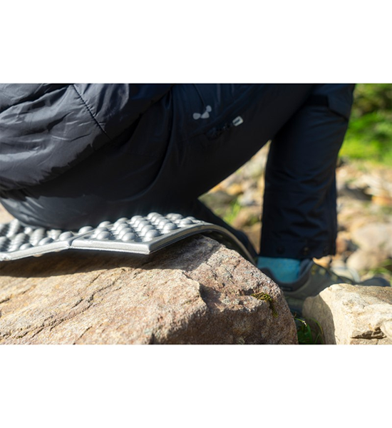 素材から見直してしっとり吸い付くような肌触りに。アルミを蒸着させて輻射熱を得ることも出来るようになりました。収納時も横幅約10cmはザックのサイドポケットに入るサイズ感です。