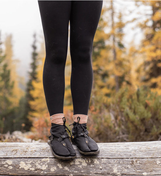 耐水性の高いナイロン製のアウターシェルと、和紙の糸から作られた新開発の日本製ファブリックで作られたインナーシェル.。非常に疎水性が高く、ブーツが濡れていても足がドライで暖かく感じられます。ソックスありでもソックスなしでも履けるようにデザインされています。天候に左右されることなく、1年中LUNAに満足していただけることでしょう。再利用可能なバッグが付属するようになったので、泥や汚れで濡れたTABUを安心して収納できます。
