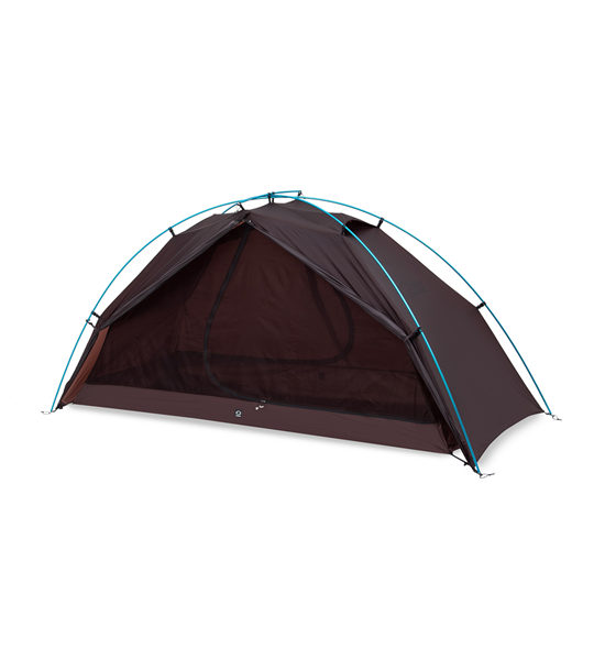 ZEROGRAMのシグニチャテントでもあるEl Chaltenは、フライとインナー、フットプリントを連結して一度に設営できる一体型構造を、初めて実現した軽量ダブルウオールテント。テントの設営撤収が非常に簡単で、稜線使いや悪天候下でも安心してご利用いただけます。長辺の前後2か所にある大きな入口と前室は、実際のフロアサイズ以上に解放感と機動力のある居住空間を実現します。インナーテント壁面全面とベンチレーションの素材には、通気性を保ちながら結露がほとんど発生しないモノフィラメントが使用されています。