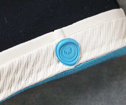 古くからゴム産業が盛んな久留米において生産される、made in japanのスニーカー。陶器のように窯に入れて焼くことから、SHOES LIKE POTTERY(焼き物みたいなくつ)と名付けられました。ソールに巻かれたゴムテープには、ひとつひとつ縄目が型押しされ、焼き物のように1点1点異なる表情が生まれます。また、ゴムの継ぎ目部分を、シーリングワックスに見立てたブルーのロゴマークで留めることで、より特徴的なデザインに仕上がっています。