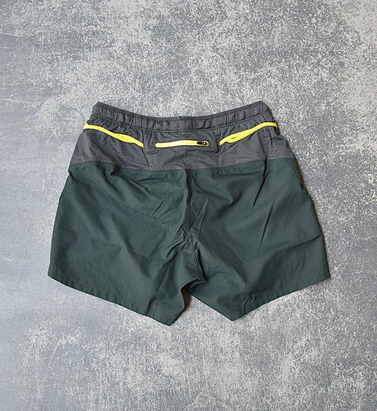 高山のスイッチバックでもレッドウッドの天蓋の下でも、目を見張る壮観なトレイルならどこへでも着いて行くショーツです。ヒップに重なる伸縮性メッシュの封筒型ポケットを4つ加え、終日のマウンテンランニングにも対応します。ポケットは栄養補給ジェルやフーディニ・ジャケットを収納できるうえ、使わないときはフラットにフィットしかさばりません。後部中央にはクレジットカードを収納できる大きさのジッパー式ポケットが付いています。DWR(耐久性撥水)加工済みの速乾性に優れた50デニール・ポリエステル100%(リサイクル・ポリエステル50%)・マイクロドビー織り素材は肌にまとわりつかず快適で、腿のパネルには摩擦を防ぐポリエステル・エアフロー・メッシュを使用。5cmのスリットが通気性を促進し、軽量なオープンニットのポリエステル・クレープのライナーは通気性をさらに向上させ、ポリジン永続的防臭加工済み。ウエストバンドは起毛エラスティックの裏地を備え、耐久性を強化したドローコードは外側でも内側でも結べるデザインです。左裾に反射性ロゴ入り。股下13cmで、5cmのスリット入り。