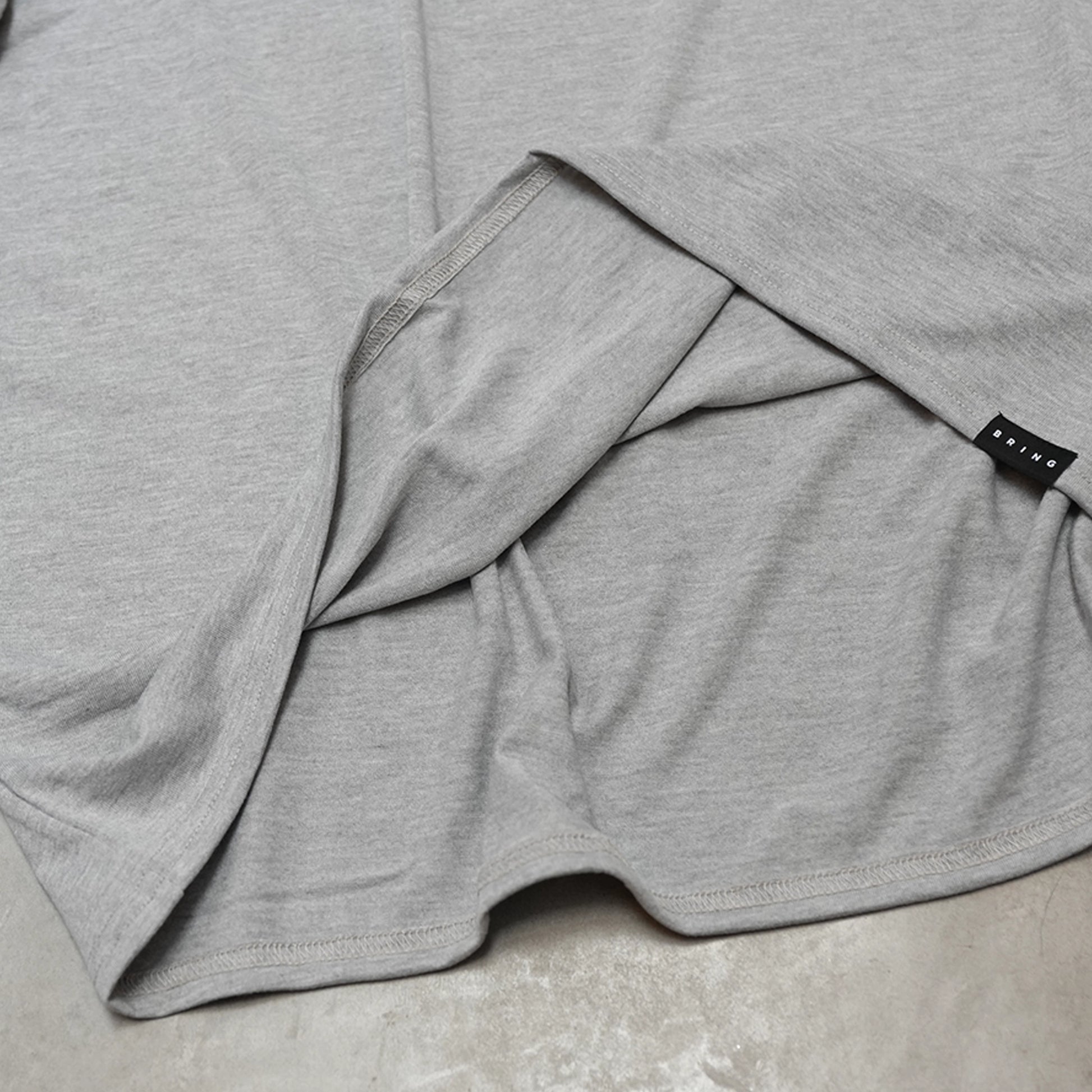 その服に、目的があるからずっと着たくなる、使いたくなる、欲しくなる。いくつかのフィールドでそんな服づくりを目指しています。さらにアクセントとして、裾にブランドタグを施すことで、普段「BRING T-shirt Basic DRYCOTTONY」をご愛用いただいている方にも新鮮な気持ちで着ていただけるよう仕上げました。