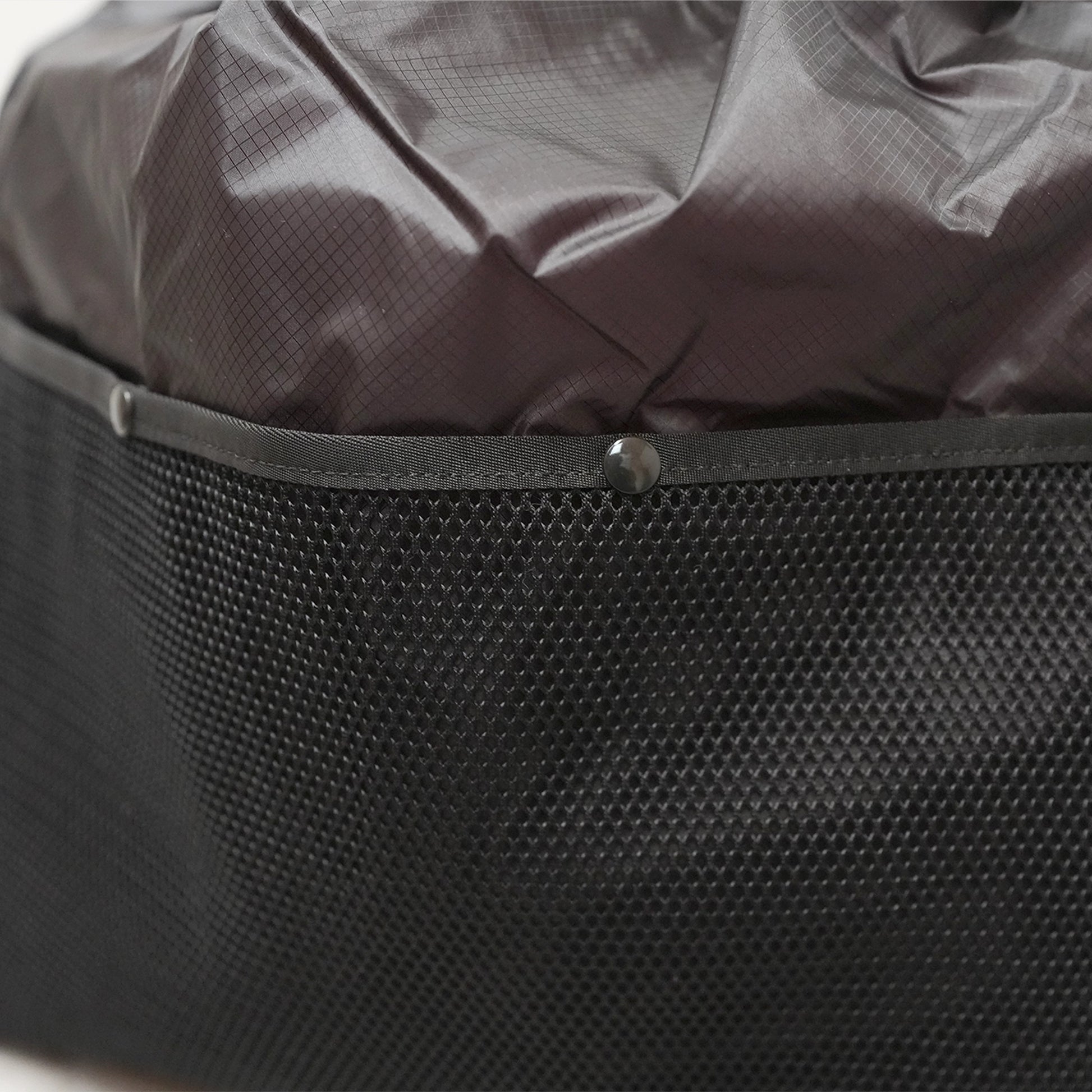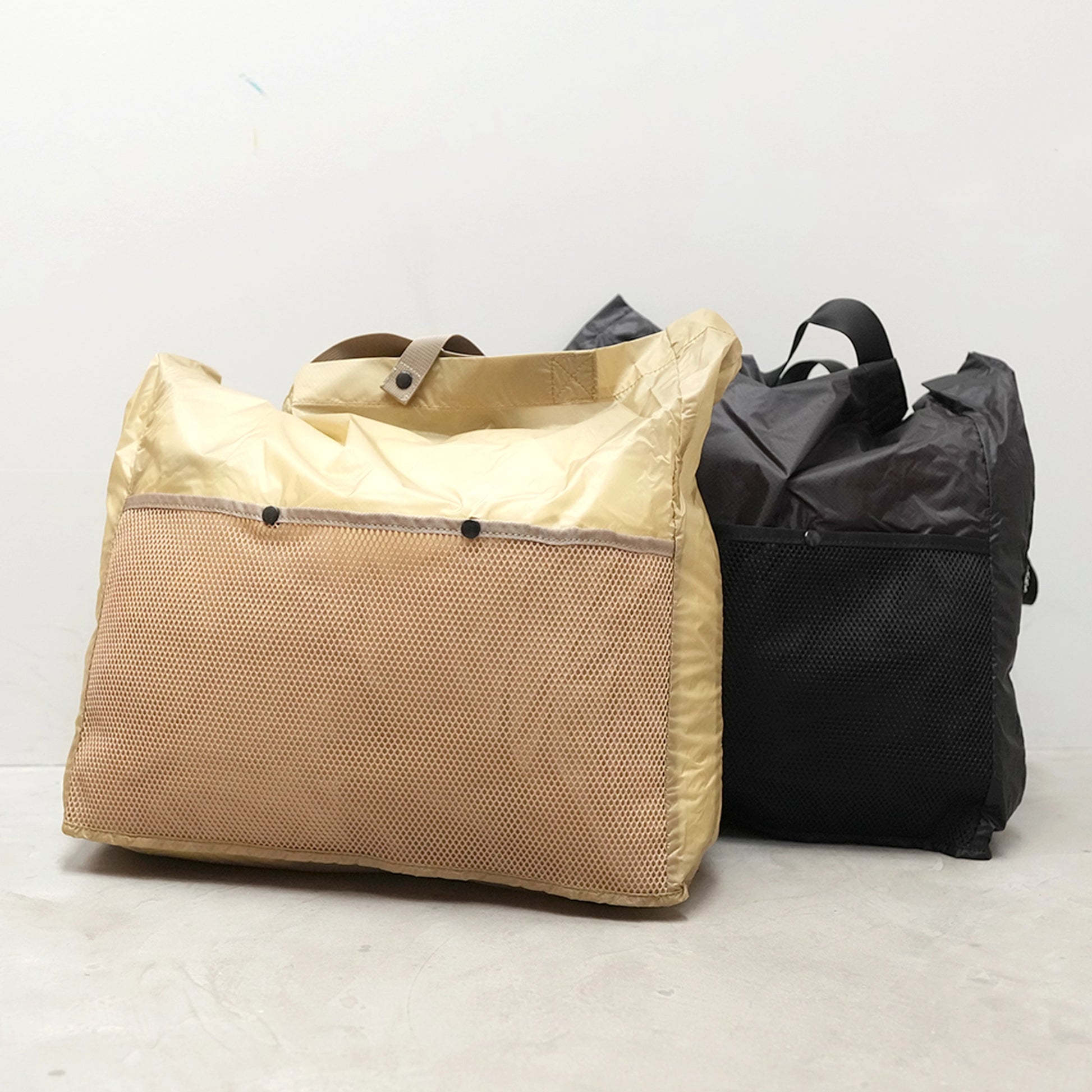 軽量で撥水性にも優れたシリコンコーティングされたコーデュラ社のシルナイロンとメッシュ素材で構成されたショルダーパック。とにかく軽量・折りたたみ可という点にフォーカスした商品です。サブバッグとして、いつもお使いのバッグの中に入れておくと便利です。メインコンパートメントの開閉は巾着のように開け閉めするトップローディング仕様。ショルダーストラップは通気性に優れたメッシュ素材を採用。名前の通り折りたたんで収納できるので買い物や旅行にも便利。バーラップ流のエコバッグの登場です。