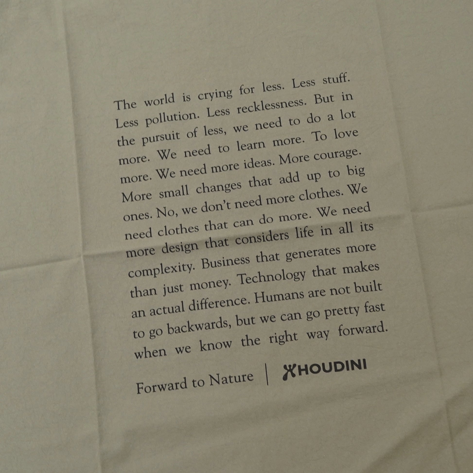 フーディニは『CORE COMFORT = 最高の着心地』をコンセプトとして1993年に設立されたスウェーデンのアウトドアブランドです。機能美、そしてミニマリズムを根幹とするデザイン哲学のもとプロダクトは開発チームとスポーツのスペシャリストであるHOUDINIフレンズによりテストが繰り返され、高い機能性に加え環境負荷の少ないサスティナブルなものづくりを続けています。