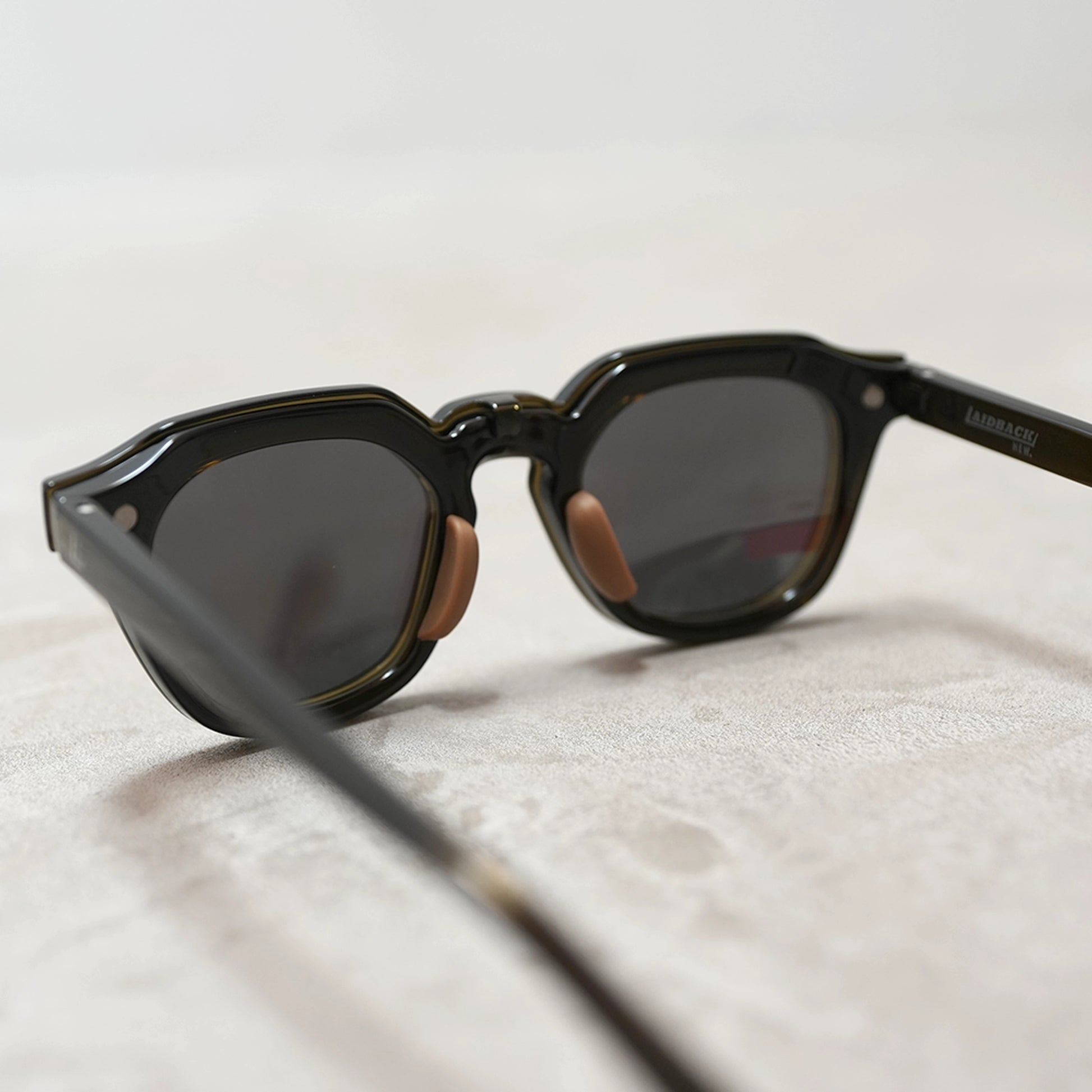 量産化まで試行錯誤を重ねたブランド初のマグネット式クリップオンサングラス。TRならではの軽さと装着した時に一見クリップオンにみえないよう一体感に拘った仕様に。さらに偏光レンズを装備しています。