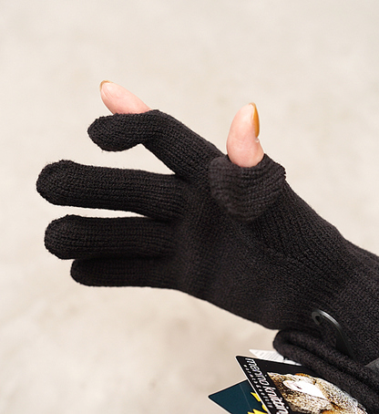 親指と人差し指先甲側の縦のスリットから指を出すことで円滑にタッチスクリーンの操作を行うことができます。タッチスクリーンには直接指で触れることができるので微妙な指先での操作が可能。スリットの位置をやや指の中心からずらしているので外した指先が操作の邪魔になりません。スリットを甲側に設けたことで物をつかんだ時の指先の違和感や冷えがなく、中細の糸で編み上げ、裏起毛処理を施してあるので肌触りが良く温かいです。