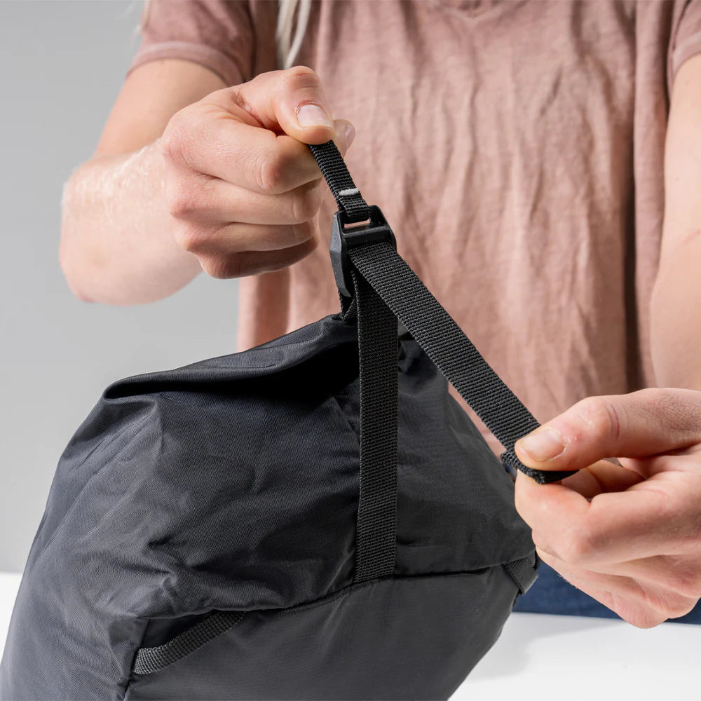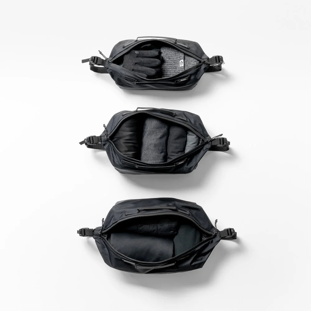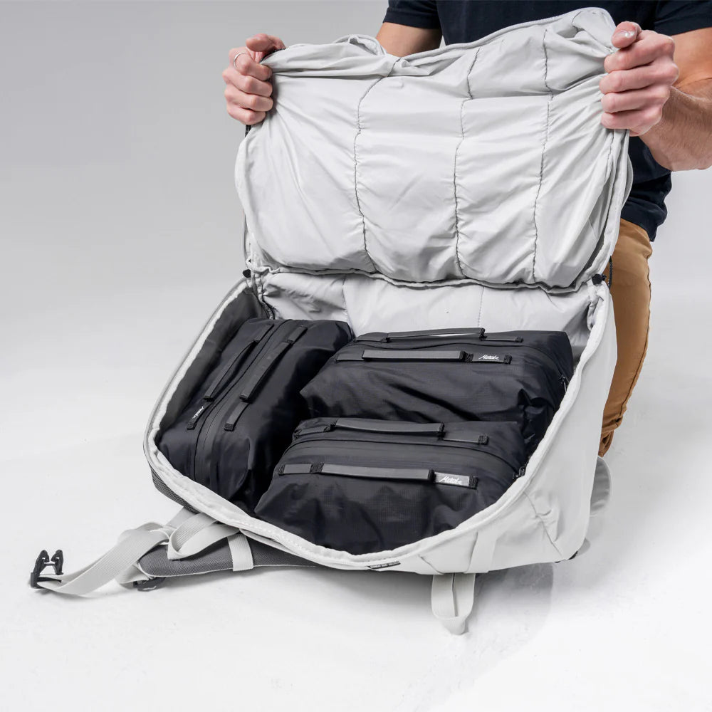 マタドール ギアキューブセットはギアや装備から衣類や靴まで、何でも整理して収納できます。バケツ型のキューブに上から物を入れ、ジッパーを締め、両端を絞って素早く効率的に圧縮します。