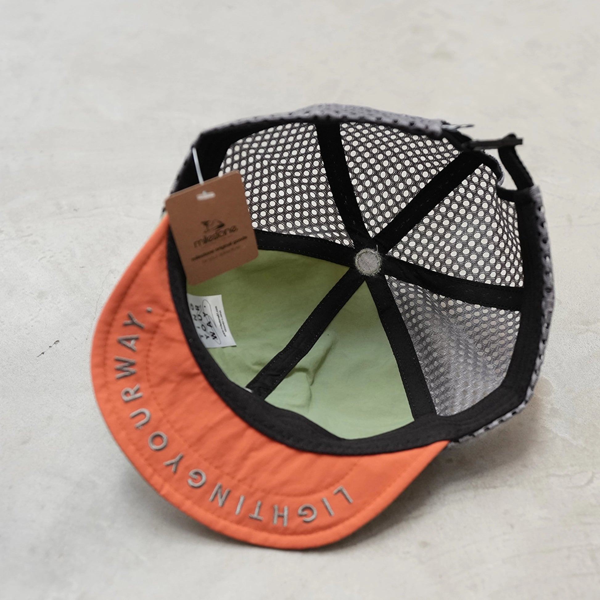milestoneの新シリーズMSC-023。サイズ感はMSC-017, MSC-022と同じで後部にメッシュ部を搭載。また、頭頂部のチョボを省いている為、ヘルメット着用時にでも快適に被れる仕様になっています。ロゴはフロント部に控えめに(従来の半分のサイズ)で刺繍を施し、風が吹いた際でも瞬時にサイズ調整可能な定番ストラップを採用。