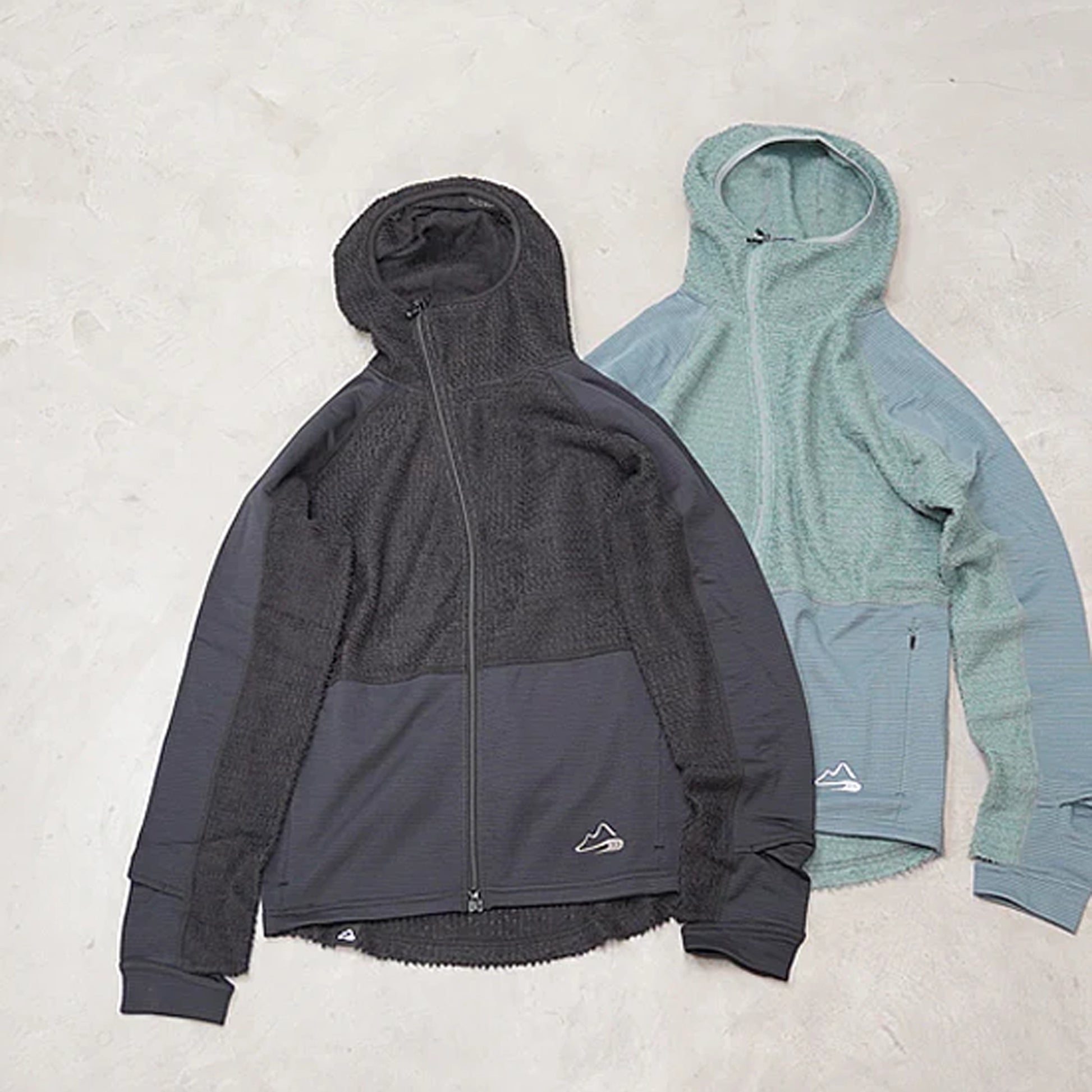 ・メイン素材にポーラテックアルファ®(保温性と通気性を兼ね備えたアクティブインサレーション)素材を使用し、ほどよい温かさとムレにくい快適感を持続させつつ、冷やしたくない腹部や、手首の部分などにグリッドフリースを部分使いすることにより、身体の部位によって最適な素材のマッピングを施しました。