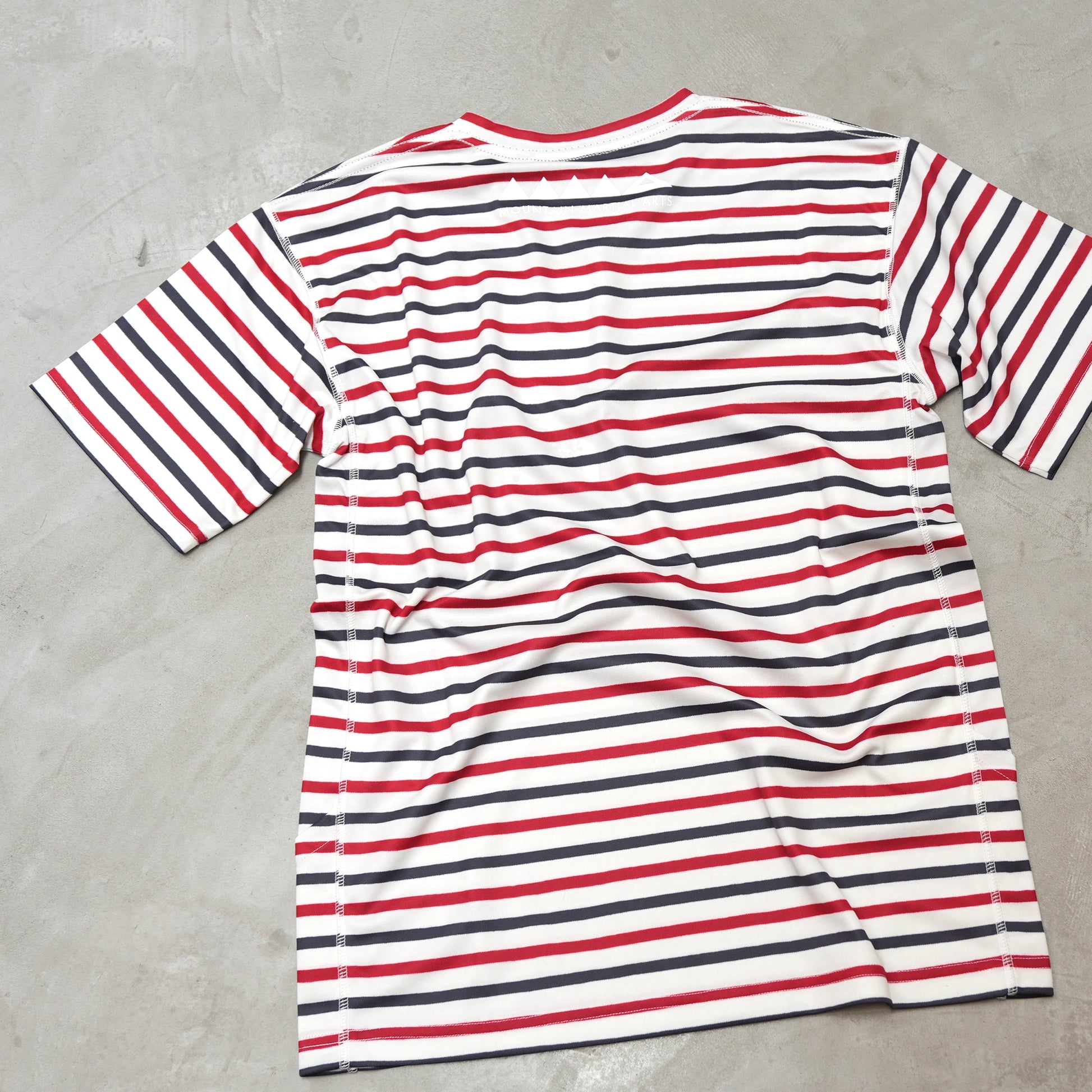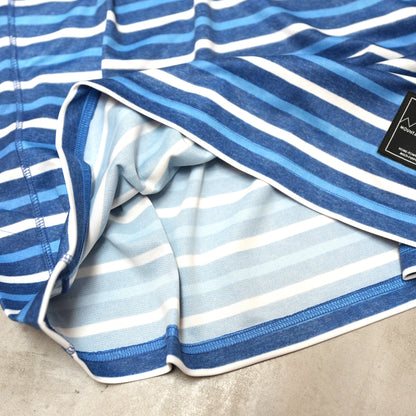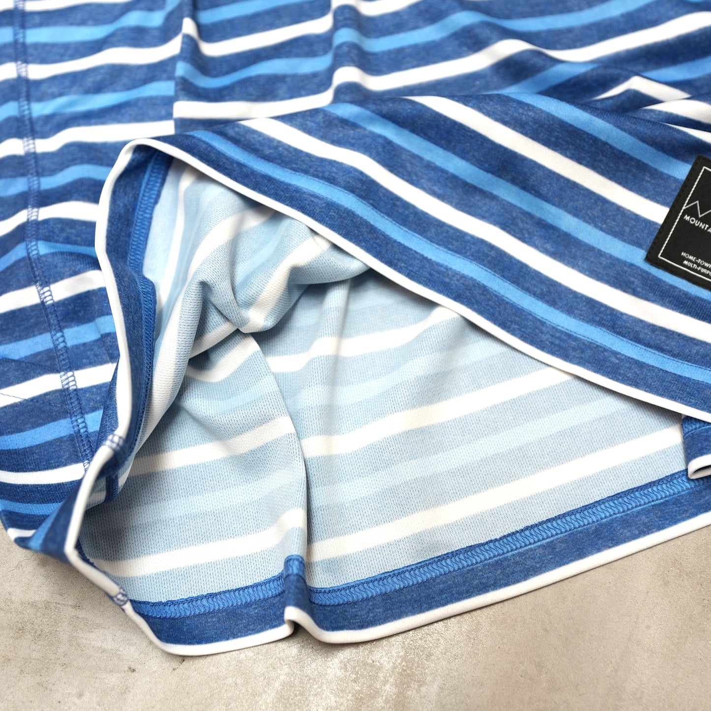 世界中のアクティビティシーンで高い信頼性を誇る機能素材「POLARTEC® Power Dry」に“ボーダーの服”を全面プリント。山や街でボーダー柄が躍動感を感じるMMA定番のTシャツです。日本製のオリジナルボディは、アクティビティとタウンユースの両方にほどよくフィットするレギュラータイプ。脇のガゼットにより立体的で、縫い目をフラットにすることで快適な着心地です。ガゼット下部には補給などを入れられるポケットを装備。本体素材は、優れた吸水速乾性とUVカットを持つ「POLARTEC® Power Dry」。機能を損なわない昇華転写で“ボーダーの服”を全面プリント。織り目やシワもリアルに表現され、スポーツウェアには存在しない“味わい”が感じられます。しなやかで肌触りがよく、ライトアクティビティから長時間のヘビーアクティビティまで対応します。オーセンティックなボーダー柄とPOLARTEC® Power Dryの持つ高い機能性は、ロード&トレイルラン、ハイク、自転車などシーンを選ばず、アクティビイティとタウンユースにマッチするシームレスウェアです。