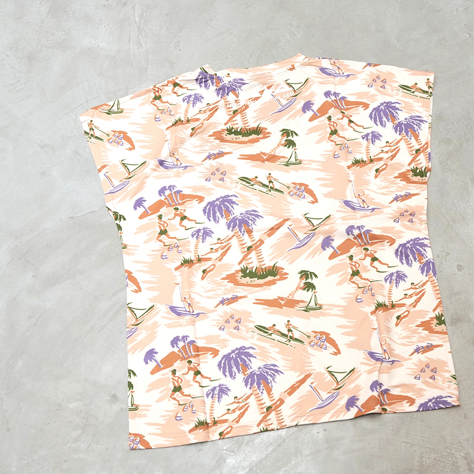 ヴィンテージアロハをサンプリングしたオリジナル柄を全面プリントしたウィメンズマルチトップスです。日本製のオリジナルボディは、肩のラインが綺麗に見える女性らしさを感じるフレンチスリーブ。ゆとりのあるリラックスシルエットで、ランニングだけではなく様々なアクティビティに対応する。縫い目を少なくすることで着用感と動きやすさを向上。本体素材は、吸水速乾性・UVカット・消臭の機能素材を使用。光沢感を抑え、表面は織りの柄が見える立体感のある素材感です。機能を損なわない昇華転写でヴィンテージアロハをサンプリングしたオリジナル柄を全面プリント。しなやかで肌触りもよく、洗濯しても早く乾くメンテナンスのよさも魅力のひとつです。ファッションの価値観にアクティビティの機能性をプラス。アクティビティでのモチベーションを上げ、タウンユースでは機能を実感します。シームレスに活躍するプロダクト。