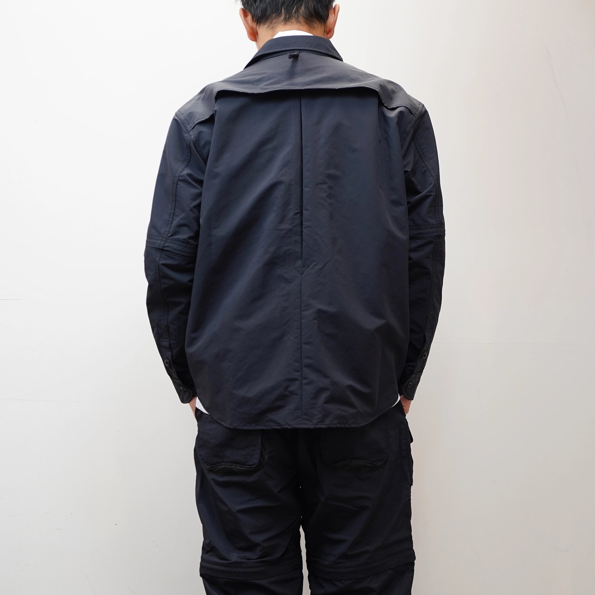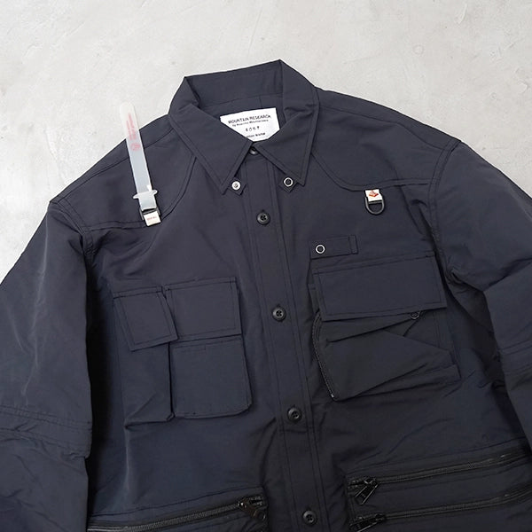 マウンテンリサーチ初期より、ブランド意匠を自負するフィッシングベスト由来のマルチポケットを用いた2wayシャツ。フロントには、用途の異なる様々な形状のポケット計7つ。コットンライクな見た目と、ライトな着心地の速乾ナイロンクロスを採用。脱着可能なスリーブは、S/Sシャツへの切り替えはもちろん、外さずに半開きのベンチレーションスタイルも推奨です。