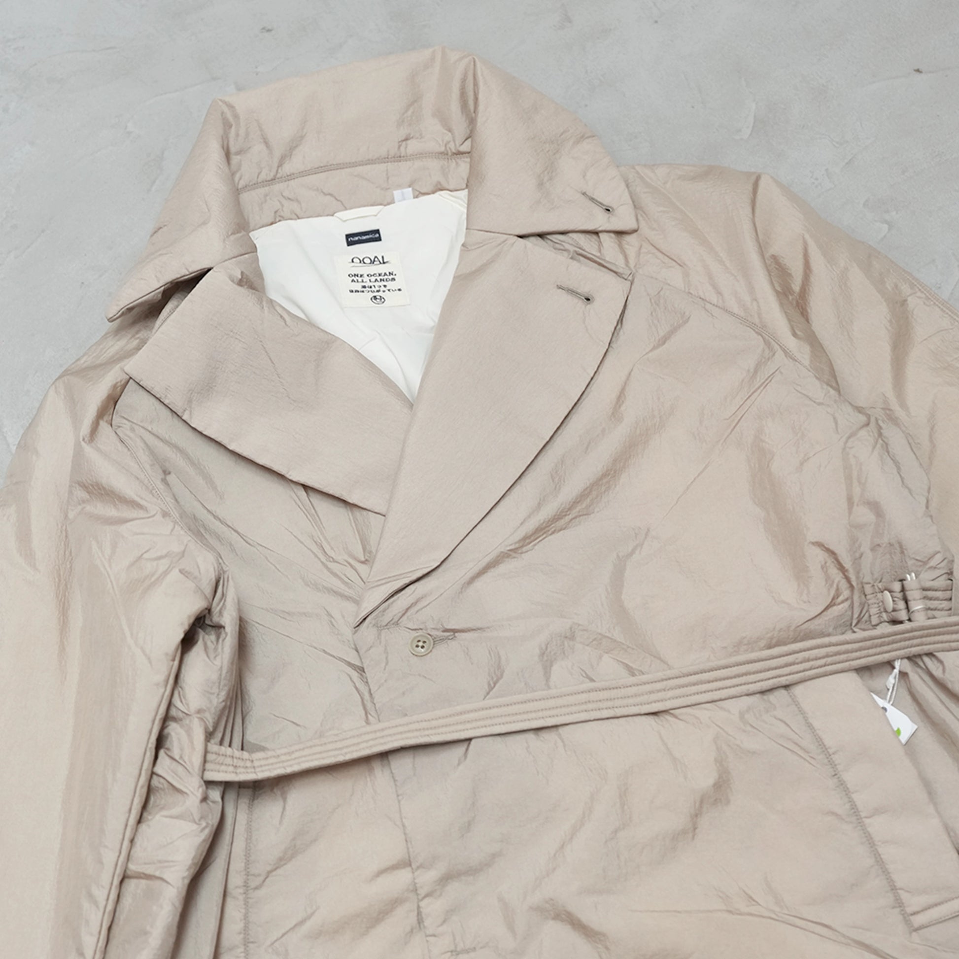 はっ水加工を施したナイロンタフタで作ったパッファーコート。