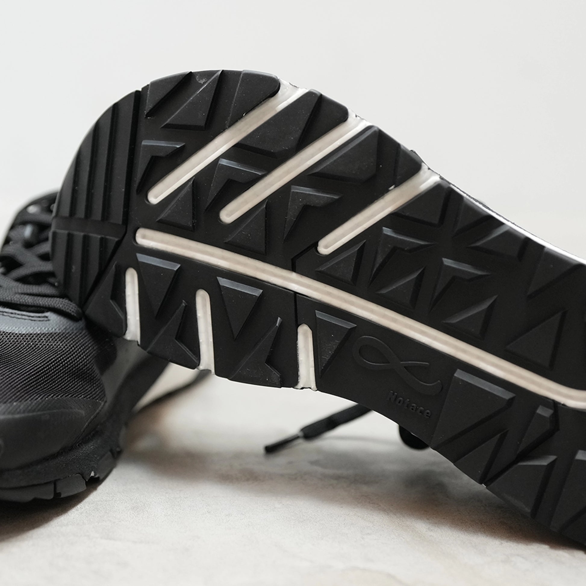 Notaceは、「足は自然なかたちで、自由に機能すべきだ」と考えています。その理念にもとづいて、軽 量かつ柔軟で、足に無理なくフィットするゼロドロップ構造のシューズを設計しました。都市でも、山でも、走るときも、歩くときも、日々のアクティビティに寄り添い、身体の感覚をひらき、研ぎ澄ませるように。Notaceは、一歩を踏み出すあなたの「パートナー」でありたいと願っています。