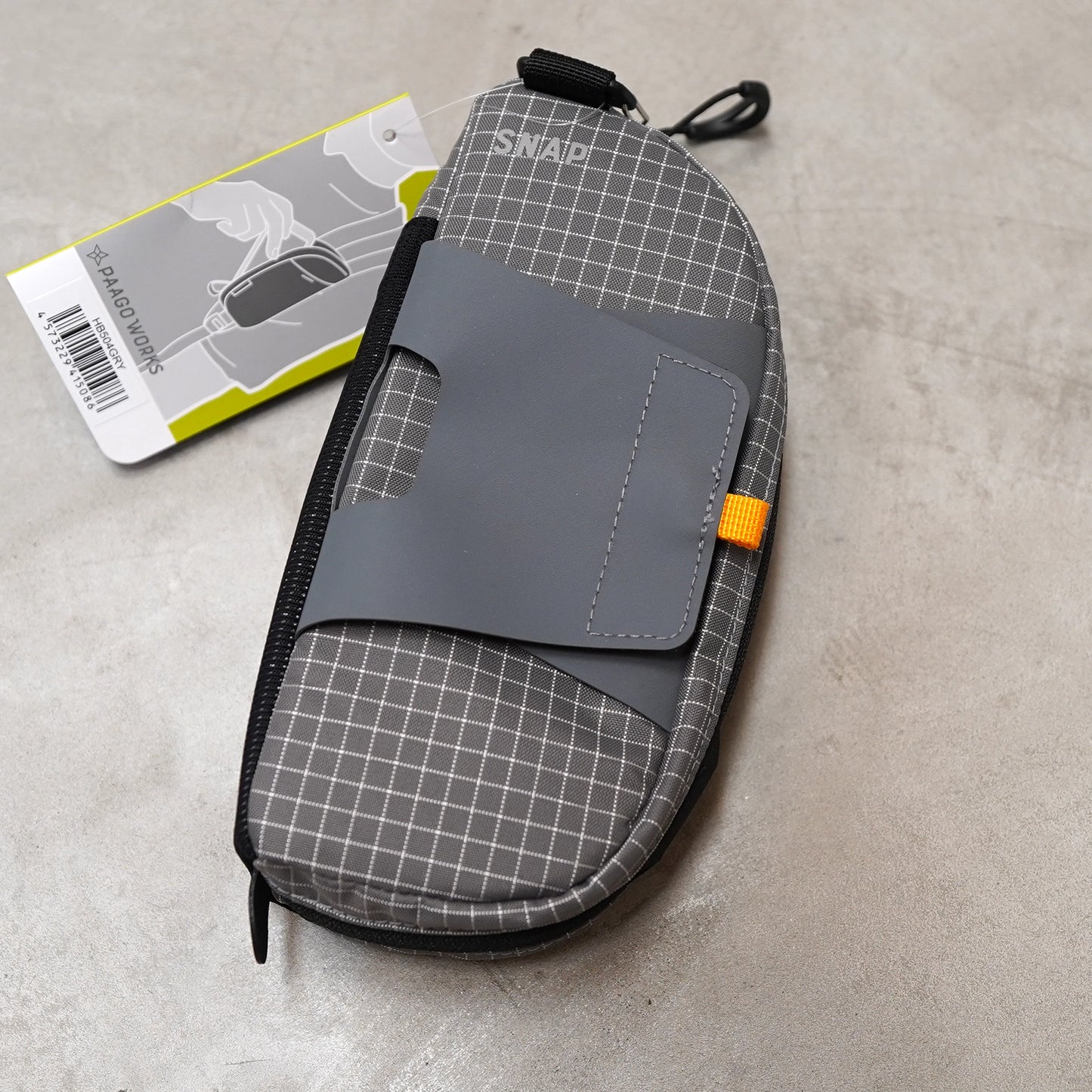 スナップは、バックパックのショルダーハーネスにつけるポーチ。手軽に脱着できるのが特徴で、スマホ・財布・カメラなどの欲しい装備に素早くアクセスできる設計です。