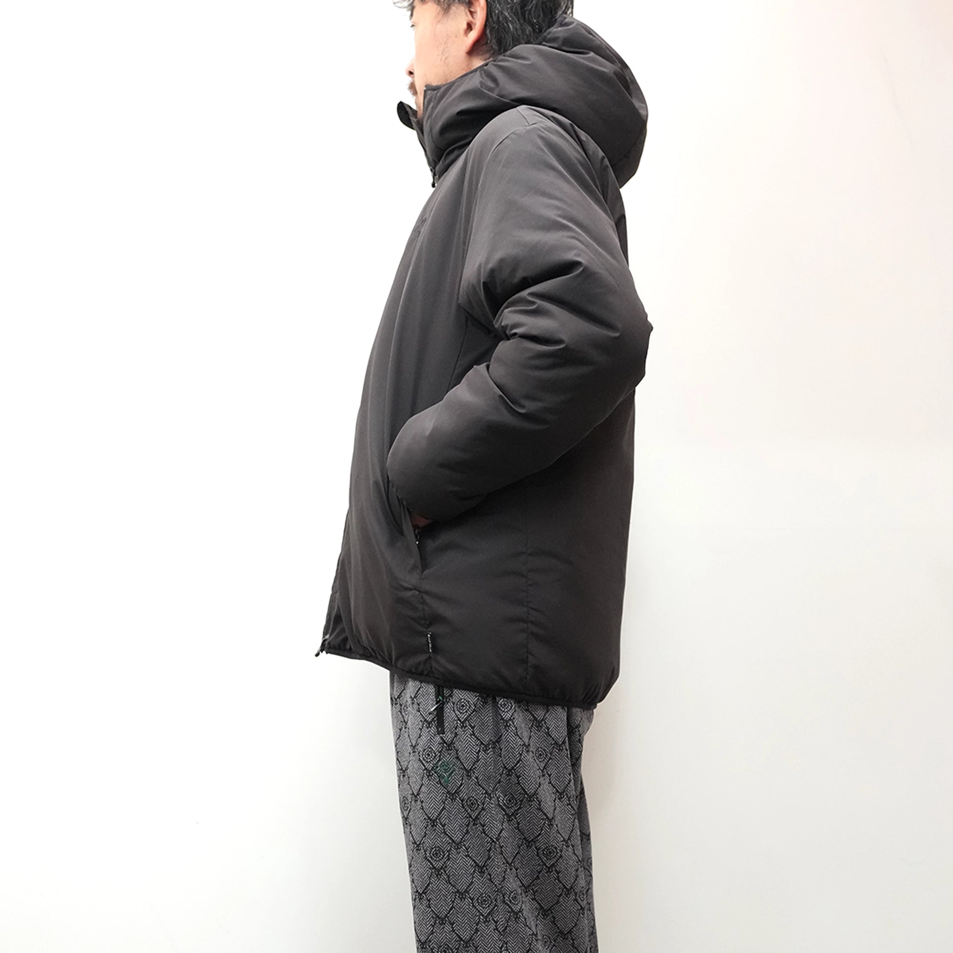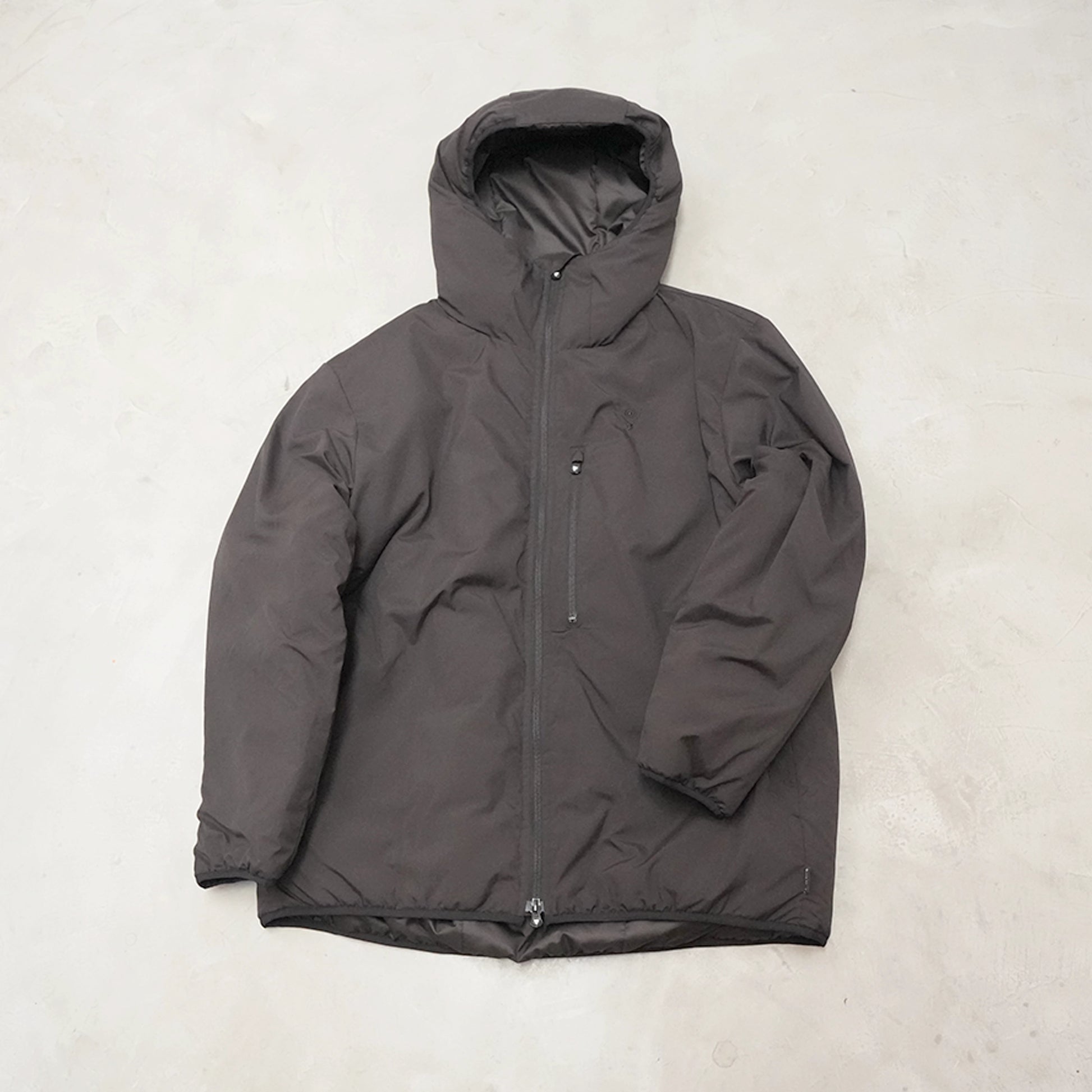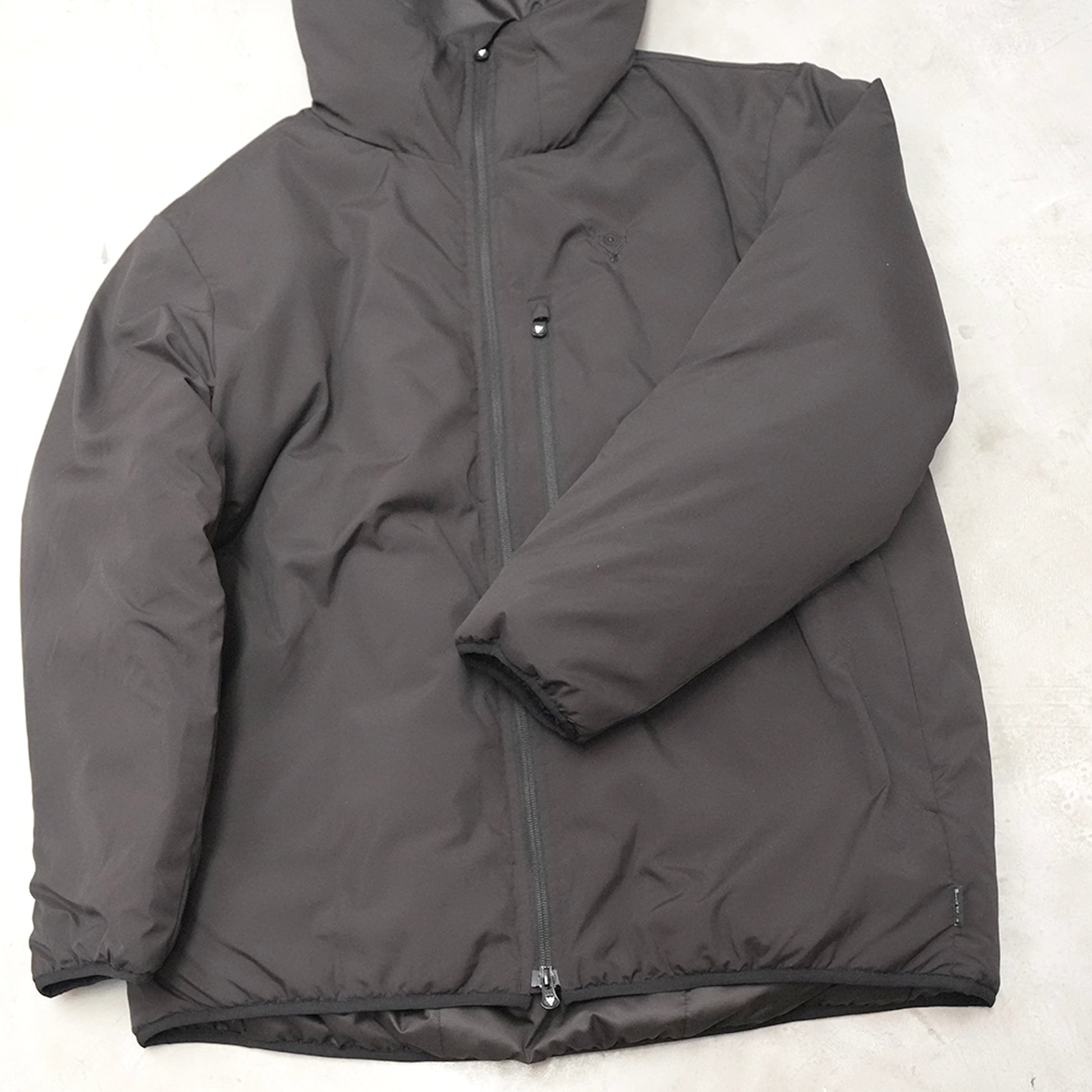 ソフトな質感のピーチスキンのシェルと、中綿のボリューム感のあるシルエットが特徴のジップパーカジャケット。空気をたっぷりと含み、保温性の高さと長時間の着用でもストレスを感じさせない軽快さが魅力。今季はレッドとブラックの2色展開となっています。