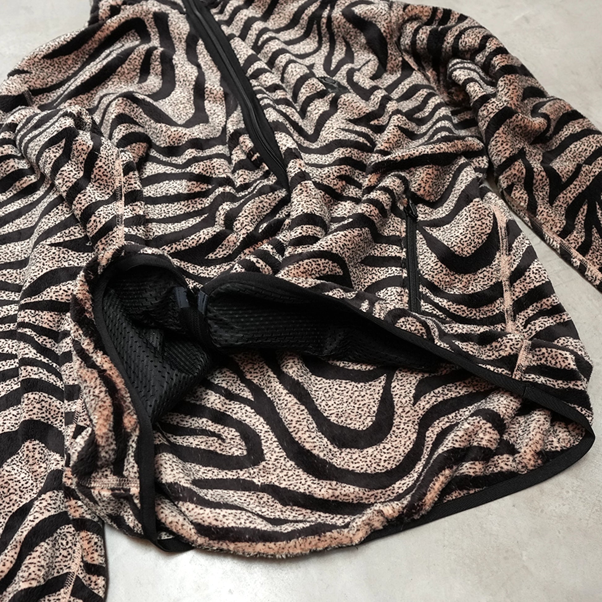 滑らかな手触りのポリエステルフリース素材を使用したジップアップジャケット。オーセンティックなフリースジャケットのデザインを踏襲した、機能的なアイテムです。ユニークなファブリックが特徴的。保温性も抜群で速乾性にも優れているため、デイリーに活躍する一着となっています。
