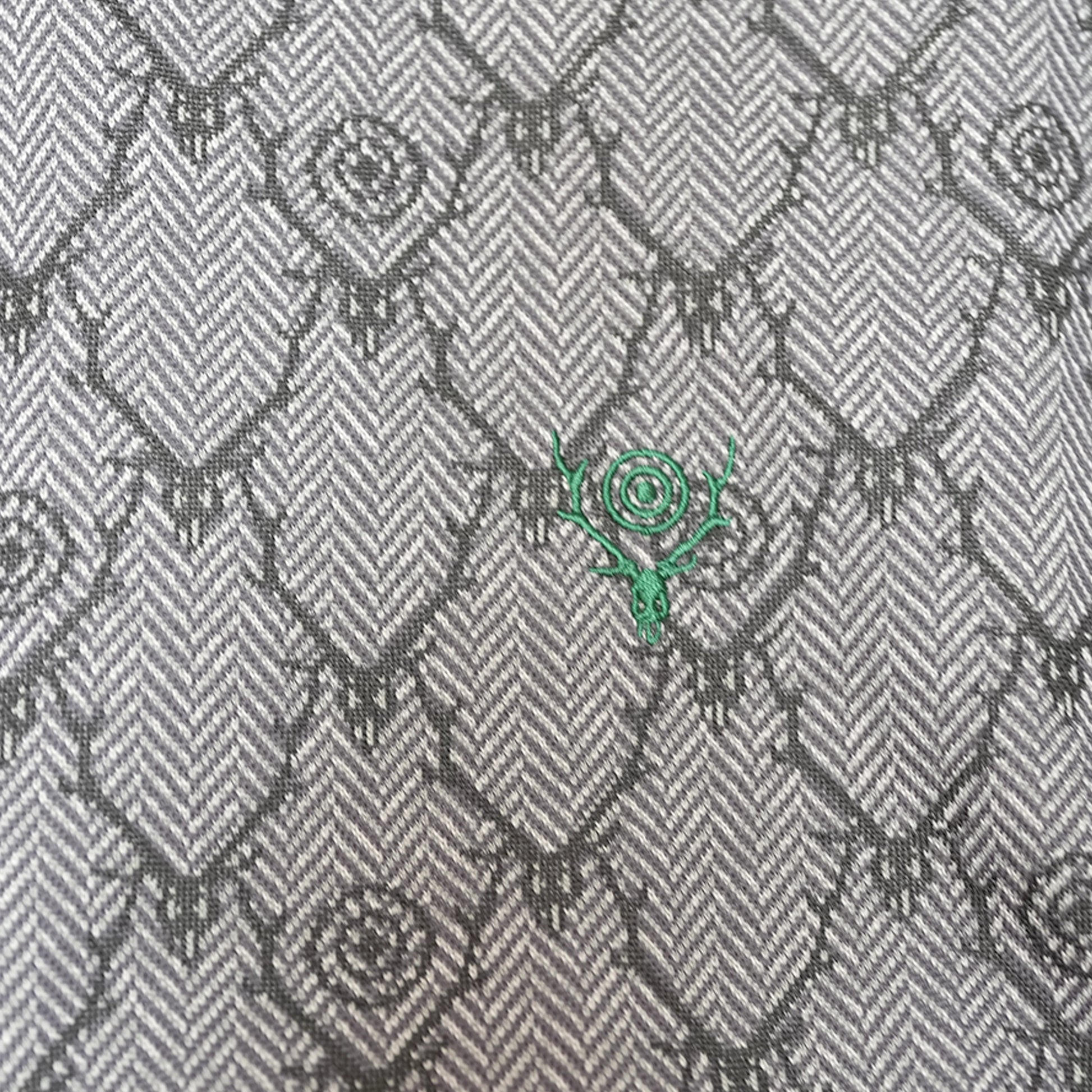 〈SOUTH2 WEST8〉のアイコンでもあるスカル&ターゲットがジャカード織の総柄で表現された、インパクト十分の一着。通気性・伸縮性に富んだポリエステルジャージー素材を使用し、タウンユースからアウトドアシーンまで活躍するトレーナージャケットです。今シーズンはオレンジとグリーンの2色展開でのリリース。同素材でパンツも2型展開されており、セットアップでの着用も可能です。