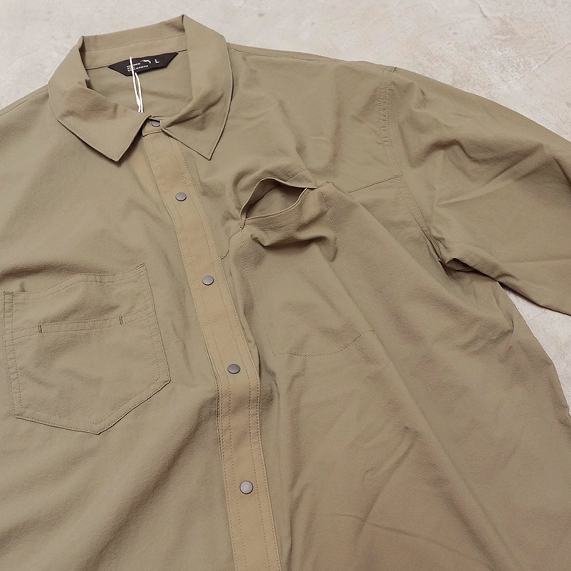 - 襟先にはスナップボタンをつけているので襟を立ち上げて日除けにも役立ちます