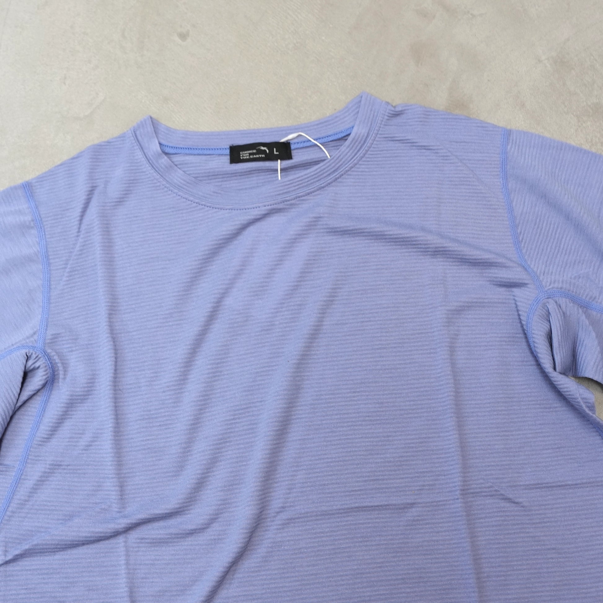 生地強度と実用性のバランスを求め、ポリエステルフィラメントをウールの繊維束で包んだの生地2種を採用したハイブリッドウールシャツ。 同じ糸から、別々の生地を織りあげ、部分ごとにマッピングしています。より盛夏のアクティビティに適するように背面と脇にメッシュ地を使用し、前身ごろには透けず、肌あたりの良い天竺生地を配置。 フィットは、タイトになり過ぎないアスレチックフィット。腰回りをトリムしミニマルなシルエットにしています。長時間の走行で裾がずり上がり難く、ザックのベストやクライミングハーネス装着時もダブつきが軽減されます。 ウールはノンミュールジングのニュージーランド産。