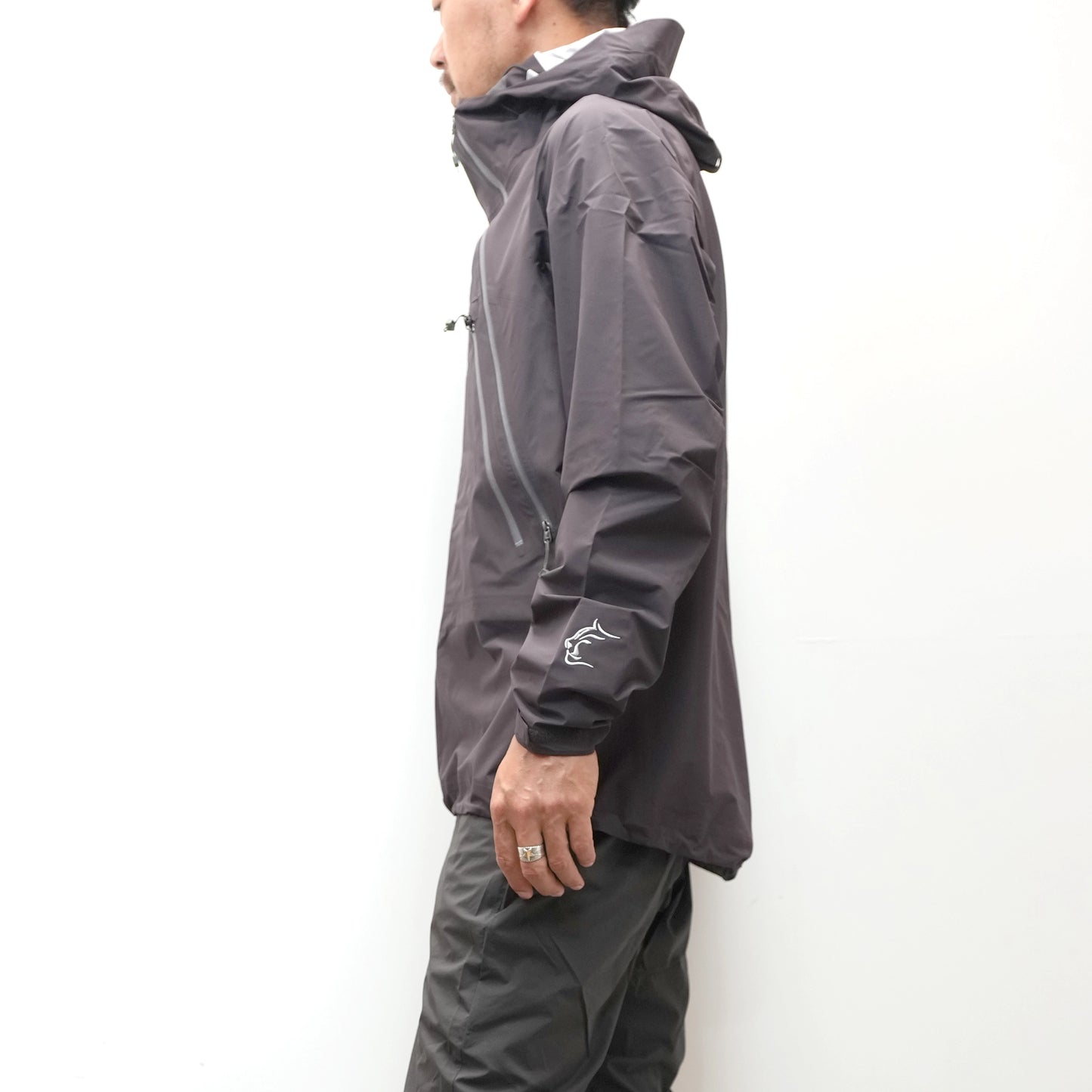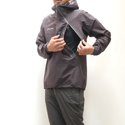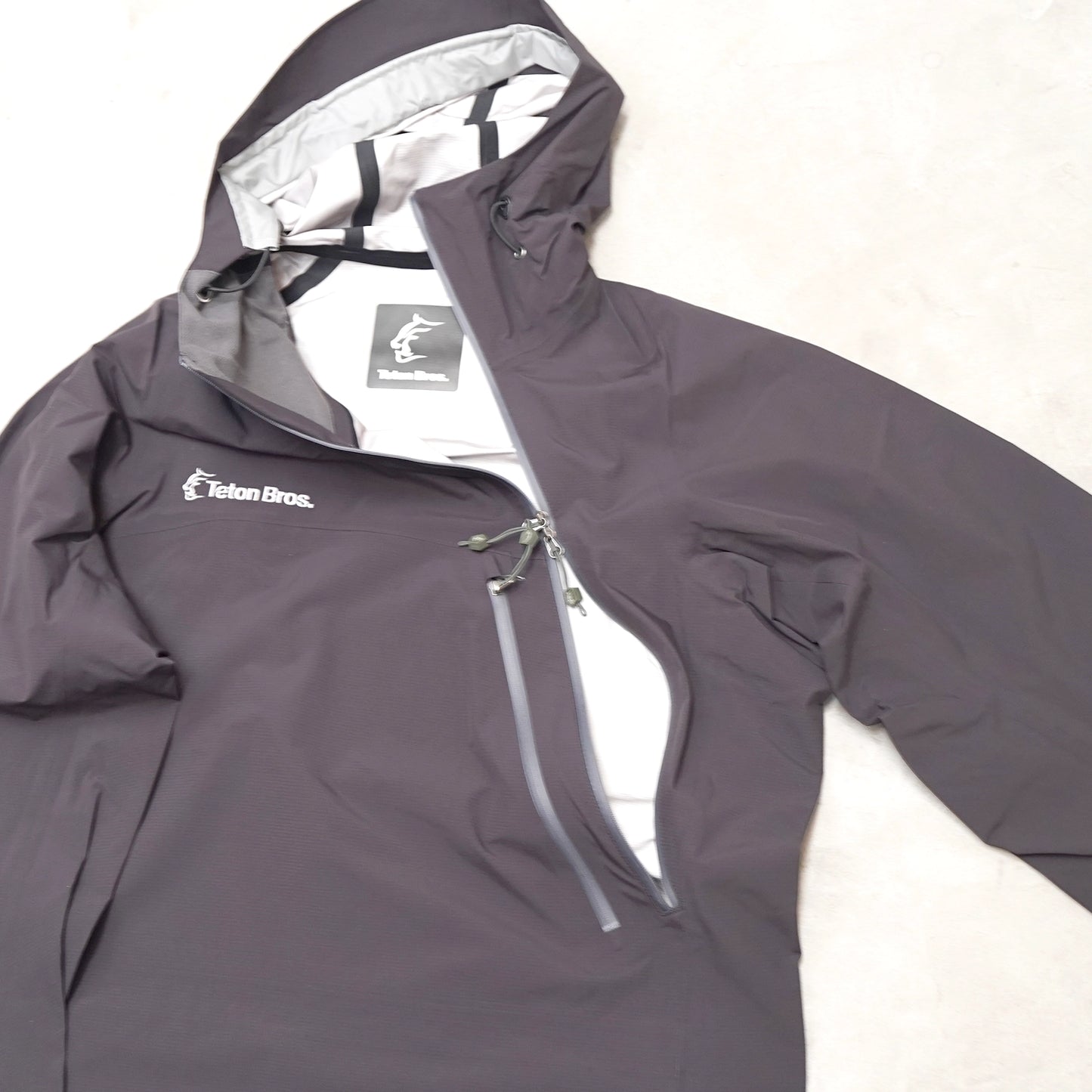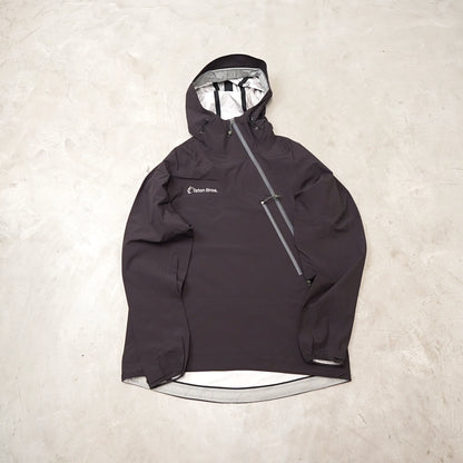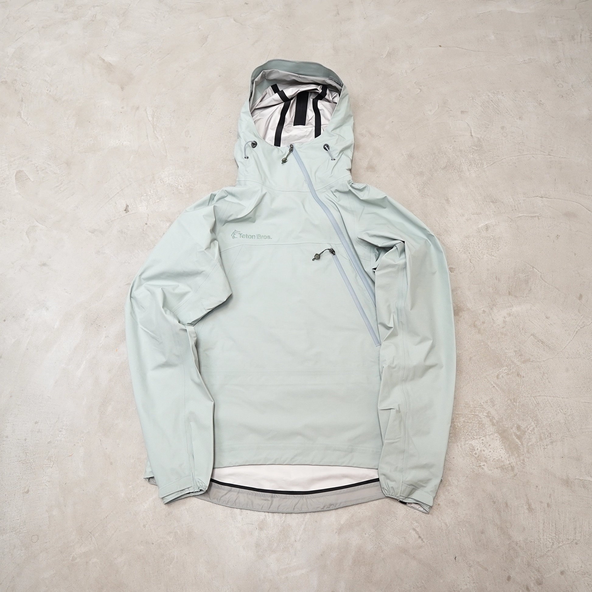 軽さと可動域を追求したプルオーバー。Teton Bros. のアイコンでもあるTSURUGI JACKET を春夏向けにリデザインした一着です。防水性と通気性を併せ持つ「Täsmä」のなかでも最も軽量なタイプを使用。高い防水性と通気性に加え、ナイロンでありながら十二分のストレッチ性を備えています。ほかにはない独自のアングルジッパーは、脱ぎ着のしやすさだけでなく、シンプルなパターンと最小限のパーツで軽量性と最大限のROM(可動域)を追求した結果のカタチです。センターにジッパーがないことで生まれるしなやかな着心地は、春夏の幅広いアクティビティに適しています。