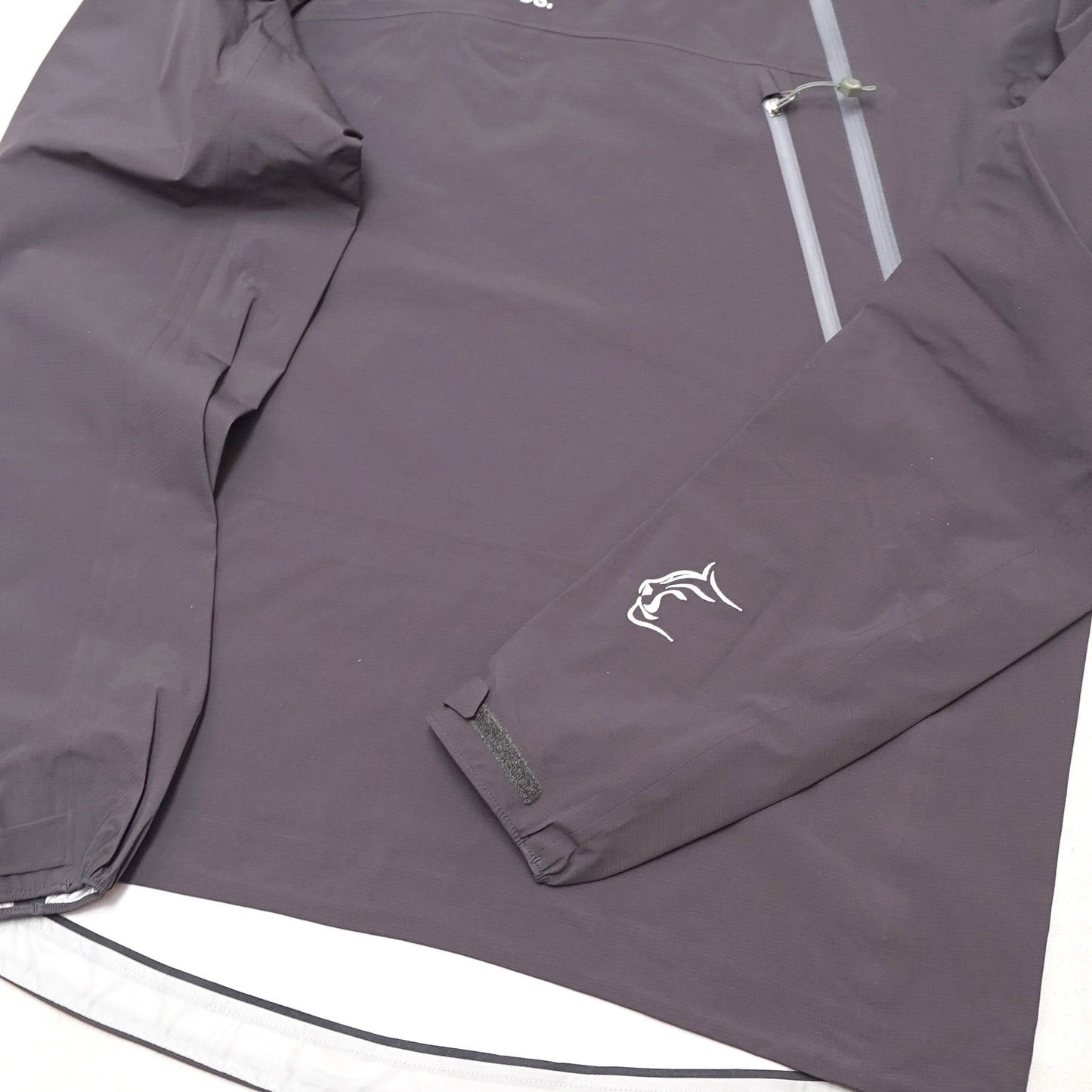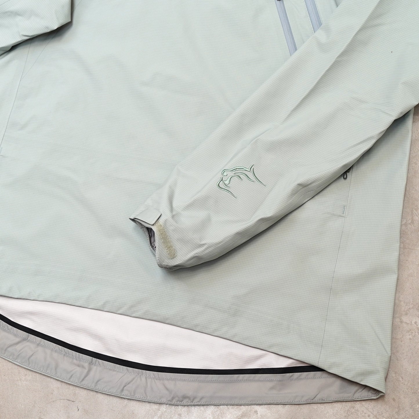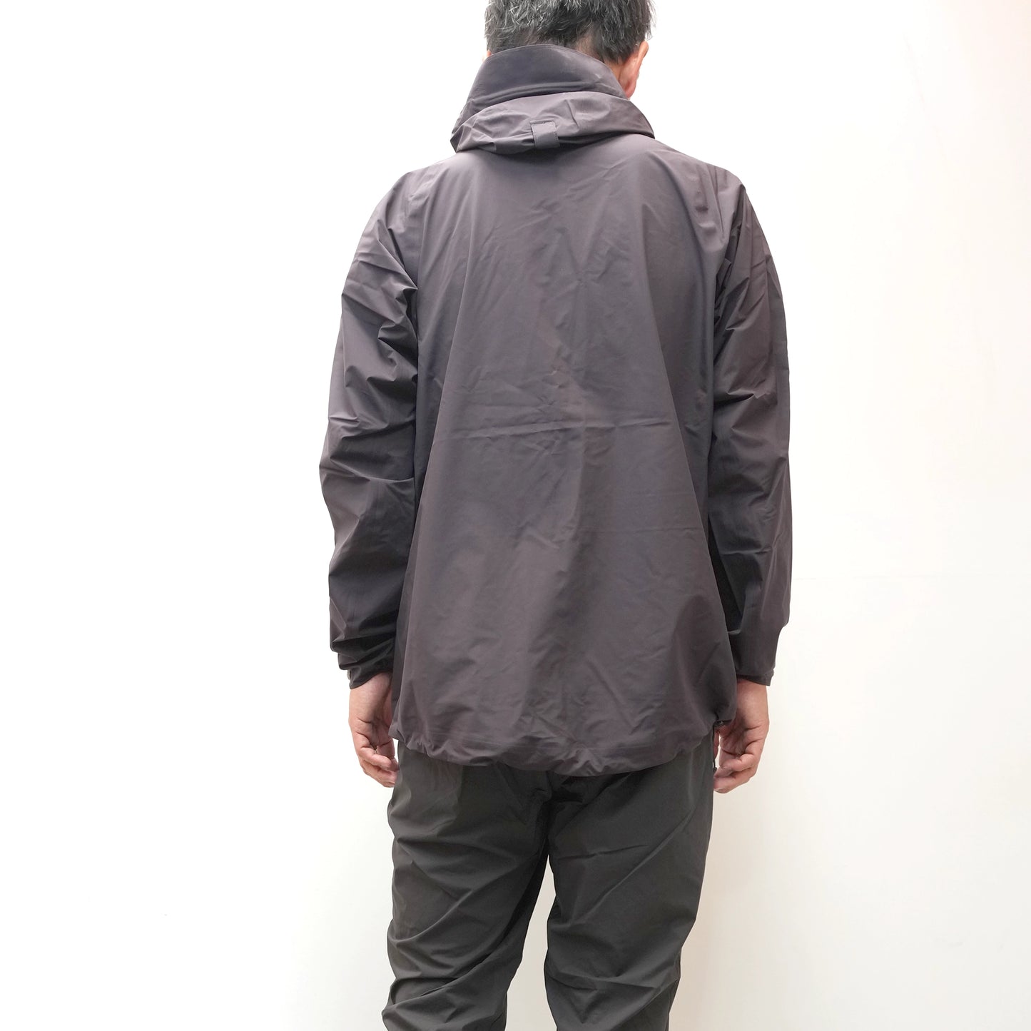 軽さと可動域を追求したプルオーバー。Teton Bros. のアイコンでもあるTSURUGI JACKET を春夏向けにリデザインした一着です。防水性と通気性を併せ持つ「Täsmä」のなかでも最も軽量なタイプを使用。高い防水性と通気性に加え、ナイロンでありながら十二分のストレッチ性を備えています。ほかにはない独自のアングルジッパーは、脱ぎ着のしやすさだけでなく、シンプルなパターンと最小限のパーツで軽量性と最大限のROM(可動域)を追求した結果のカタチです。センターにジッパーがないことで生まれるしなやかな着心地は、春夏の幅広いアクティビティに適しています。
