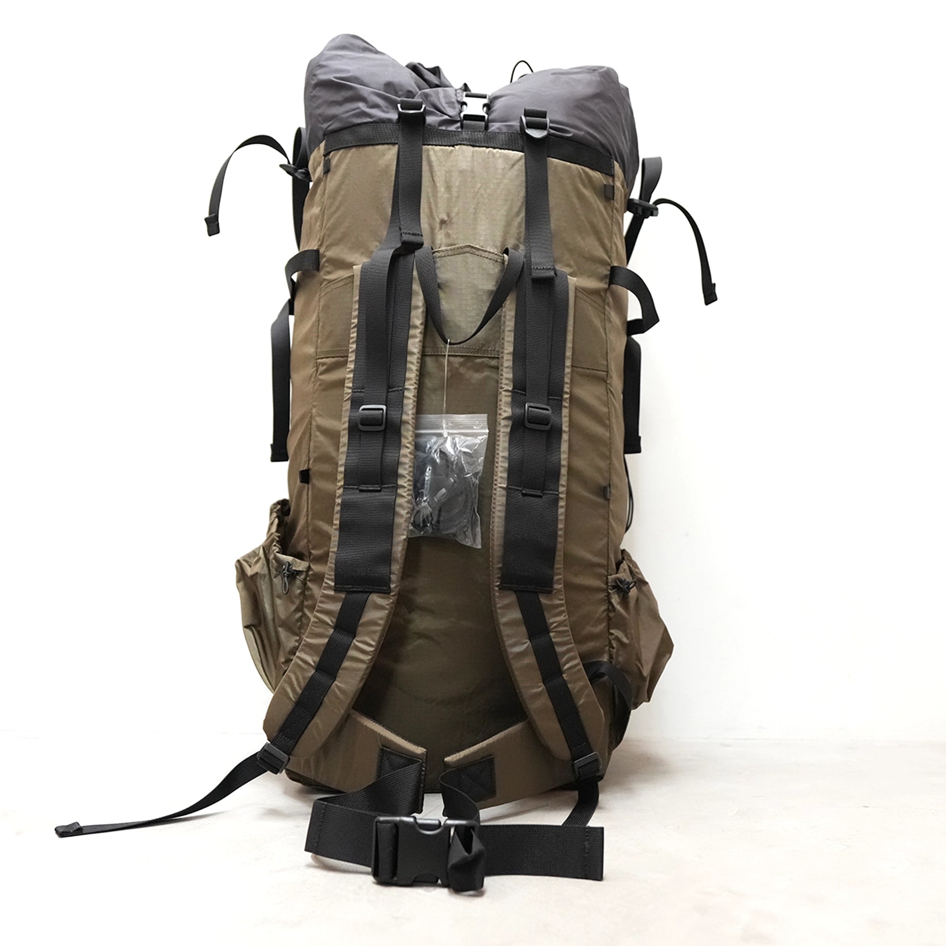 トレイルバムたちの欲望を丸ごと飲み込むほどの大きさを備えた『荷運用』バックパック。とにかく荷物をたくさん入れたい。ざっくり入れたい。まとめて入れたい。背負いやすさではなくて入れやすさ。だけどシンプルで、大きさに対してはかなり軽量。トレイルバムにしかできない、リアルでふざけたバックパックです。